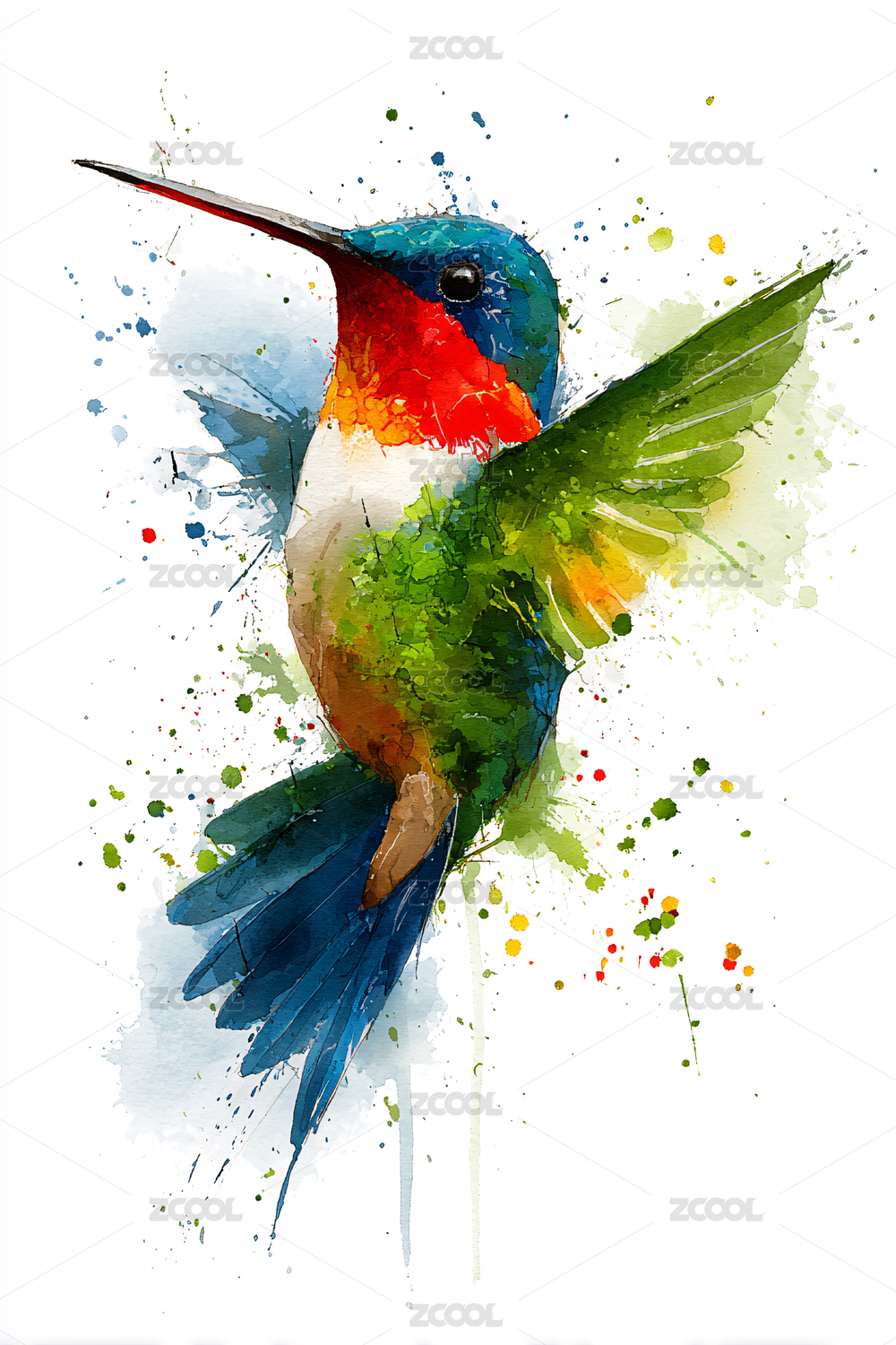 水彩画蜂鸟