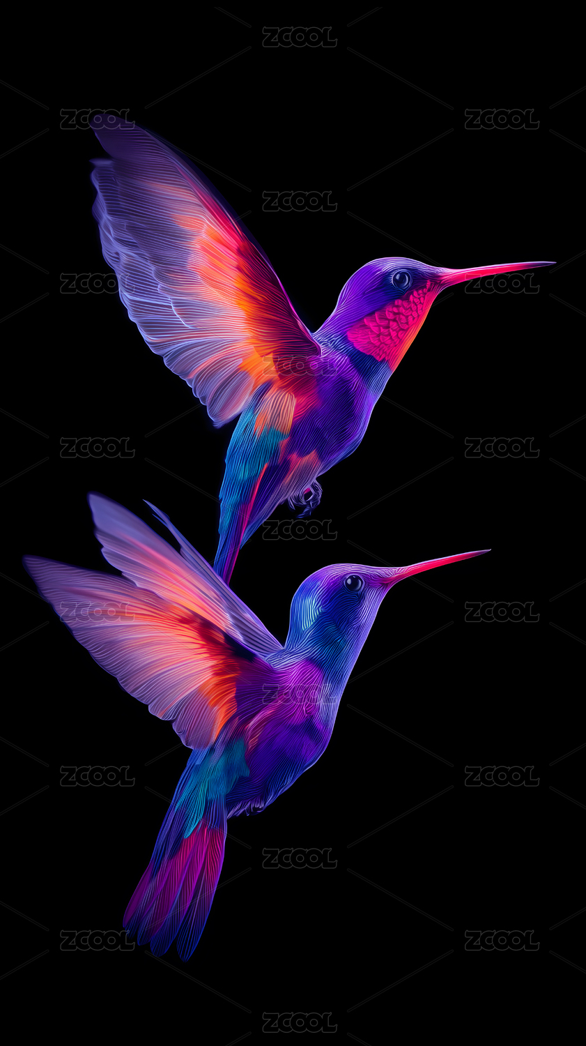 动物,黑色,艺术,美丽,线条,绚丽,优雅,羽毛,蜂鸟,翅膀