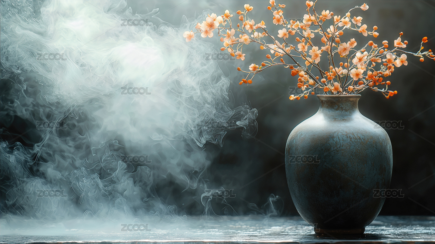 花瓶,插花,花卉,烟雾,禅意,冥想,放松宁静,室内安神,侘寂,意境
