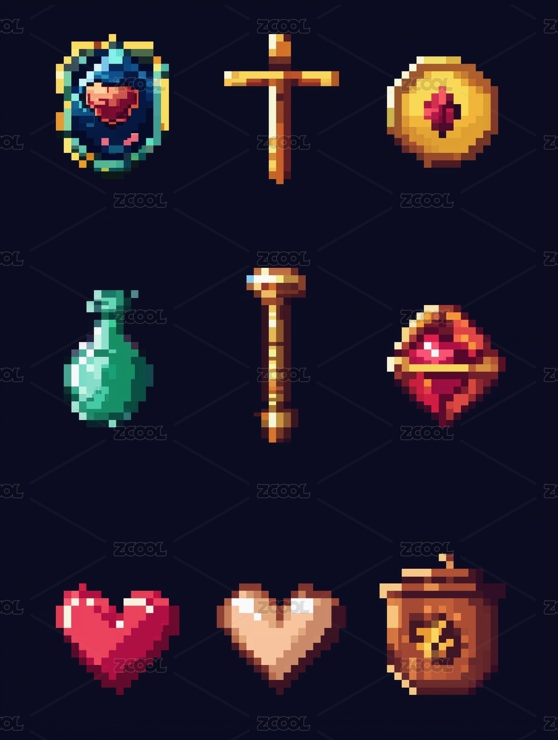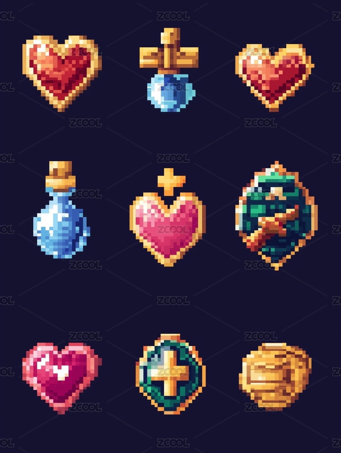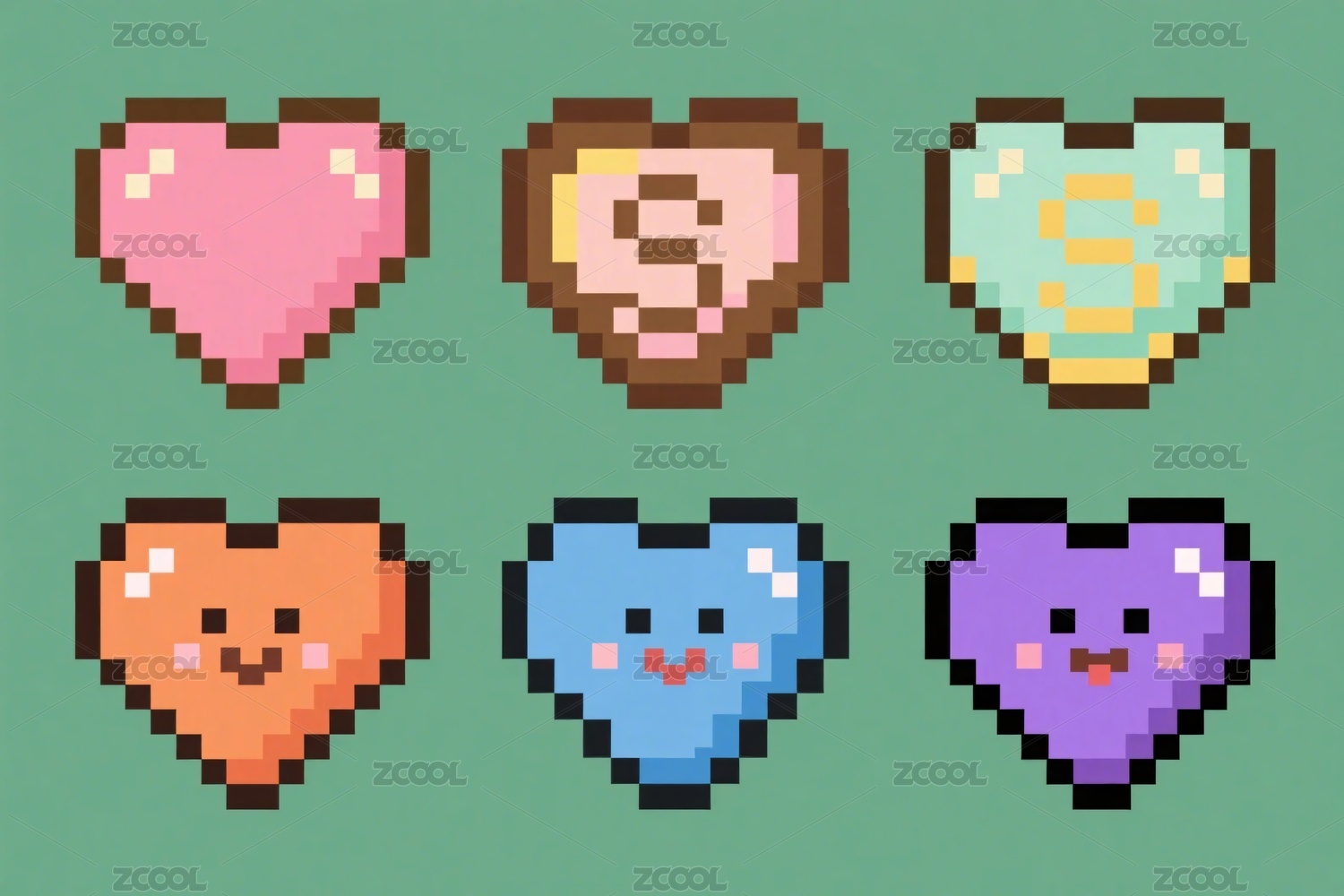 粉色,爱心,像素,贴纸,插画,图案,装饰,可爱,浪漫,卡通