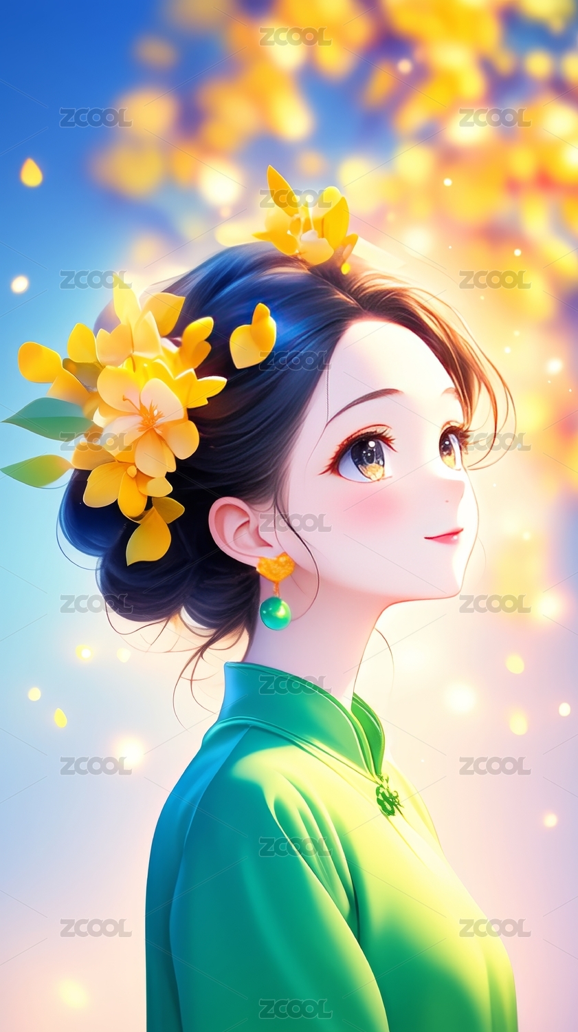古风少女戴花侧身像