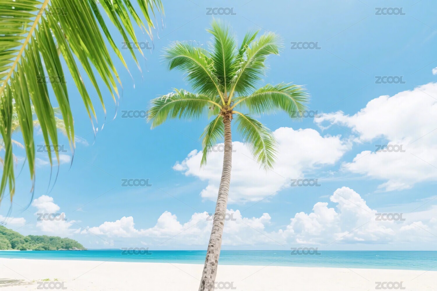 热带, 海滩, 椰树, 沙滩, 海水, 蓝天, 白云, 阳光, 度假, 风景