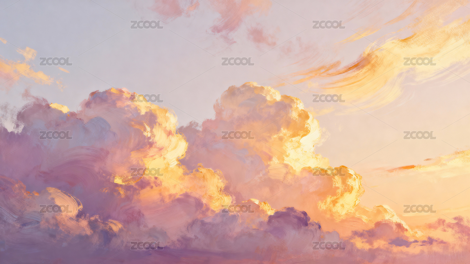 天空,云彩,黄昏,色彩,柔和,光影,梦幻,浪漫,意境,插画