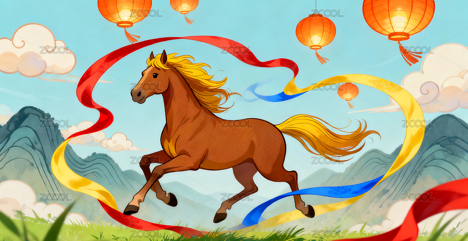 骏马红绸国潮场景