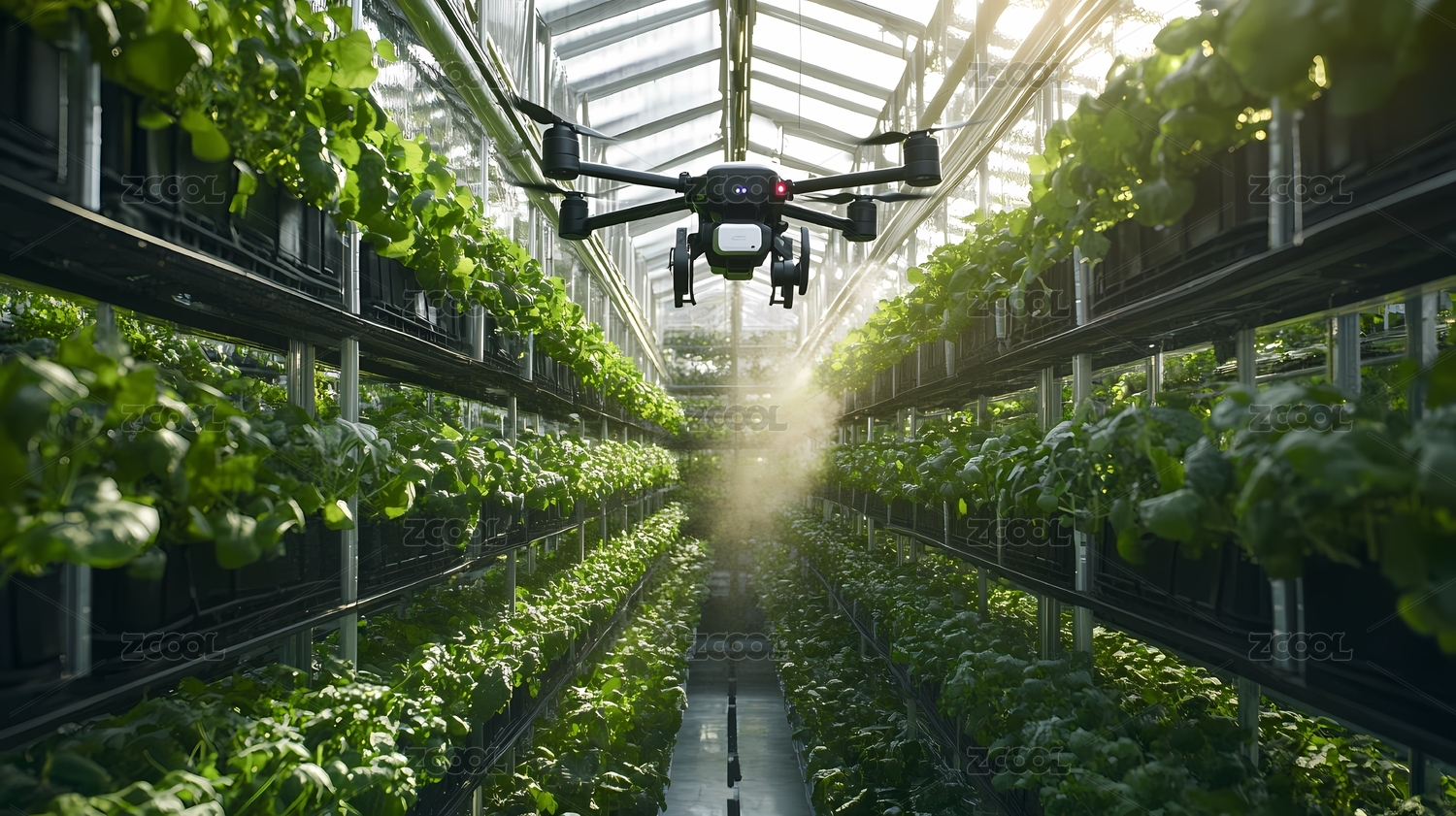 无人机,作物,农业,喷雾器,垂直,农场,温室,赛博朋克,人工智能,智能