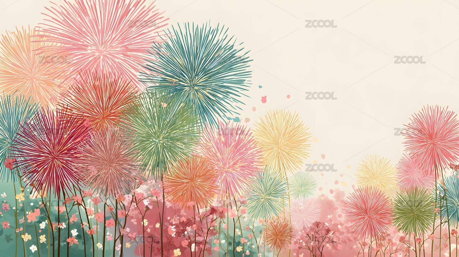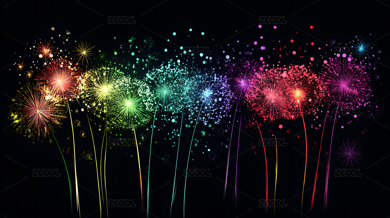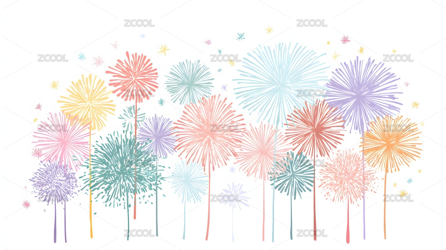 彩色烟花节日庆典浪漫绽放艺术装饰插画