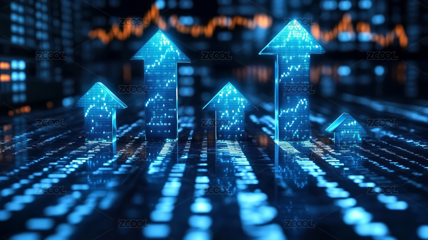 闪亮蓝色上升的箭头背景,金融经济股市增长