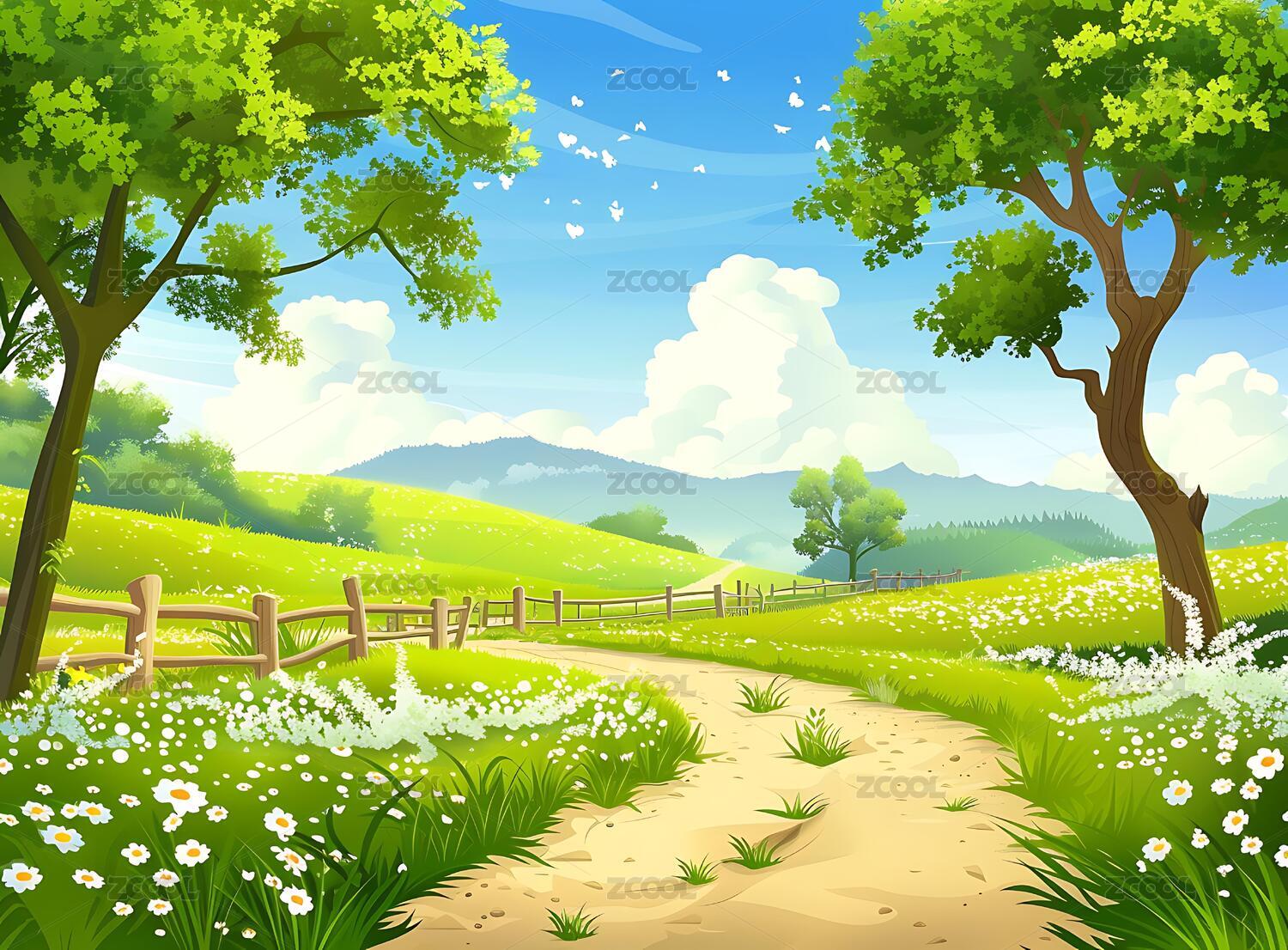 卡通自然风景插画