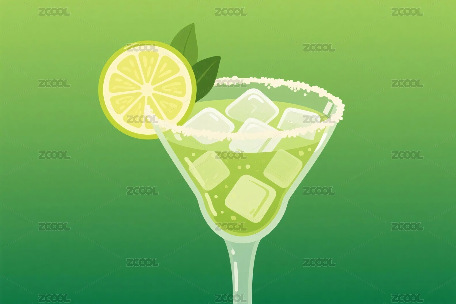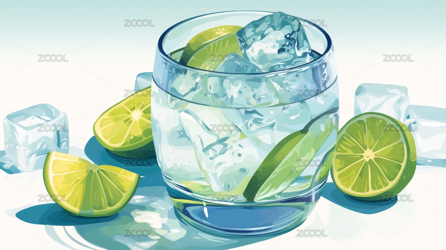 莫吉托,玻璃杯,柠檬片,薄荷,冰块,清新,插画,背景,食品,风格
