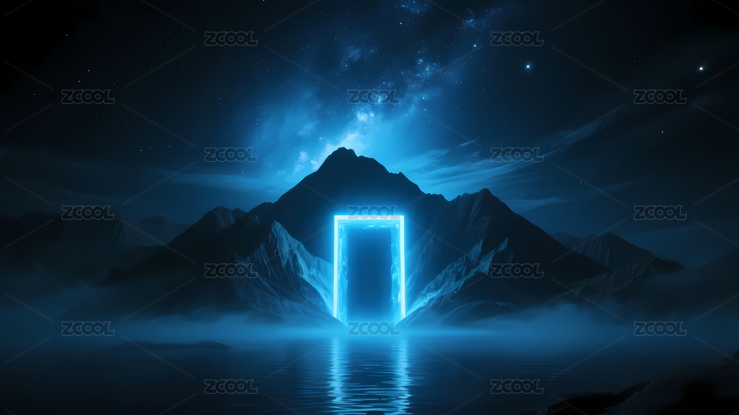 科技, 自然, 静谧, 倒影, 蓝色, 橙色, 梦幻, 湖水, 光芒, 光效
