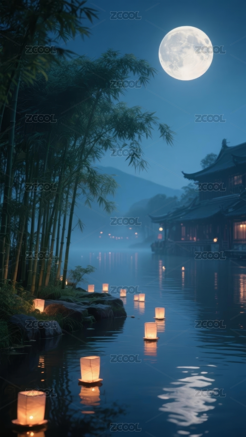 月夜水乡诗意场景
