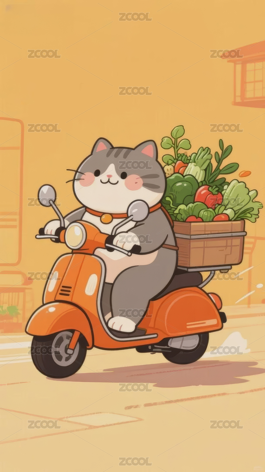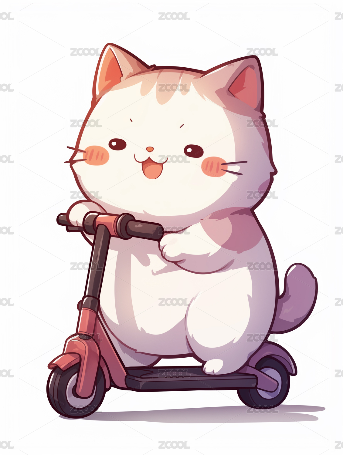骑滑板车的可爱猫咪猫猫插画形象设计