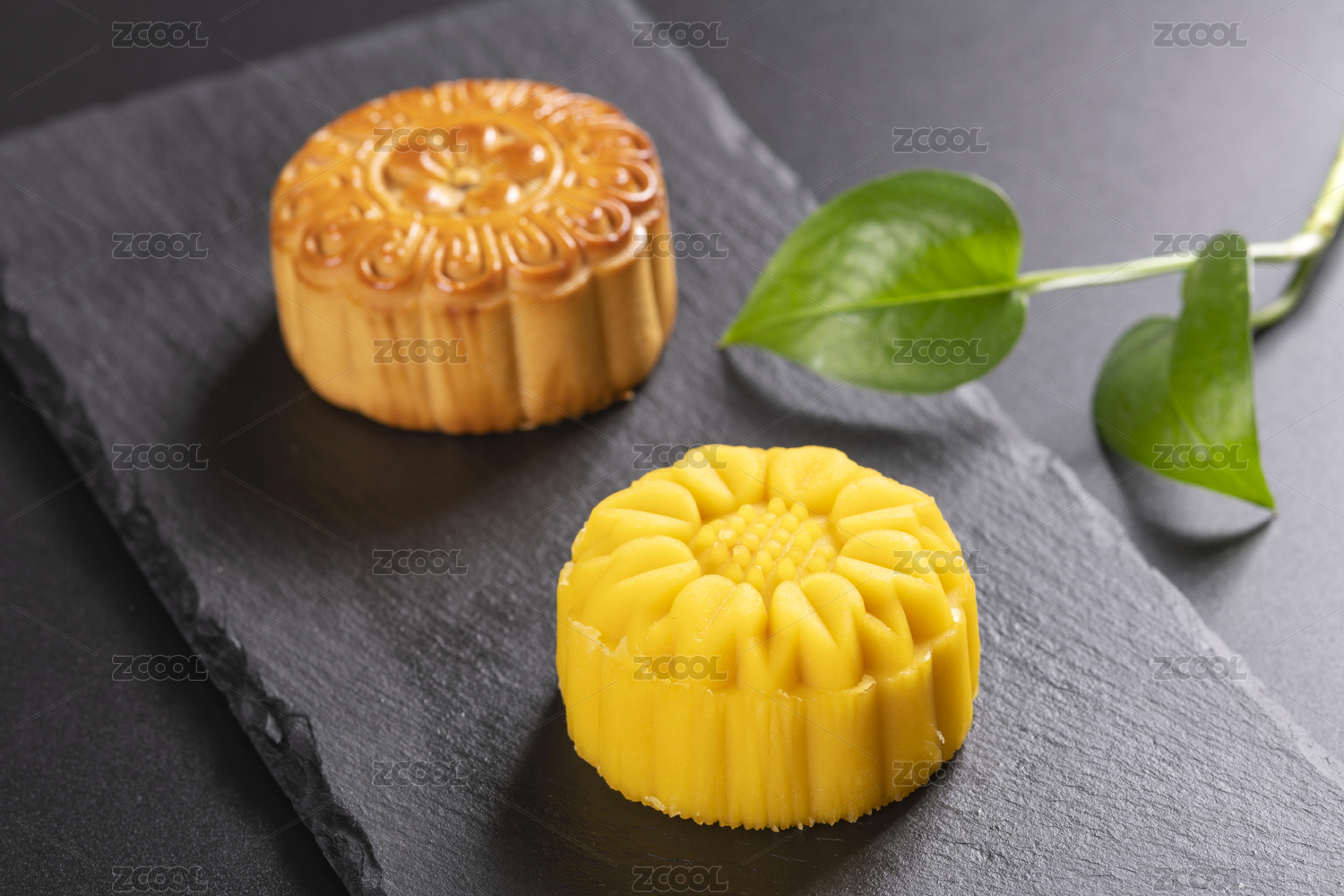 中秋节传统美食月饼摆放在黑色背景上