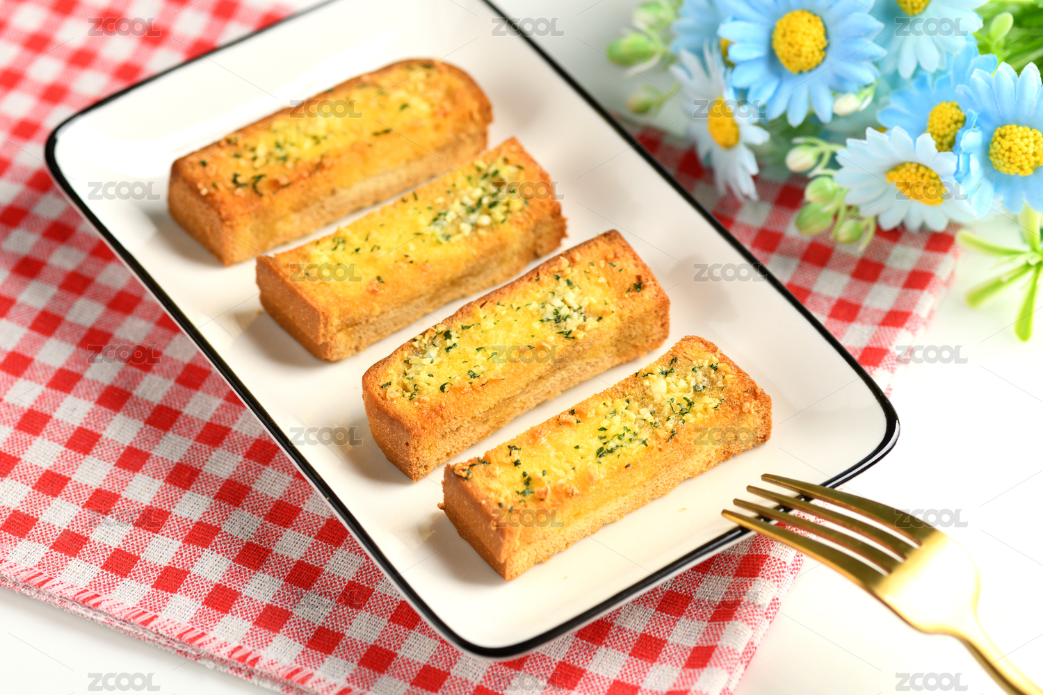 黄油蒜香面包条,烤面包条,黄油,大蒜,烤面包,面包,面包条,一盘,叉子,西餐