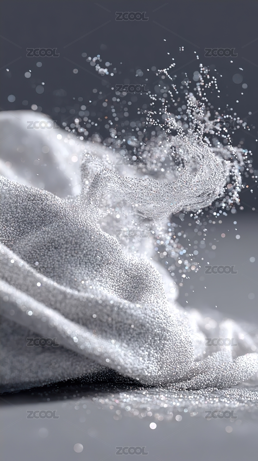银色颗粒翻滚流动抽象艺术作品