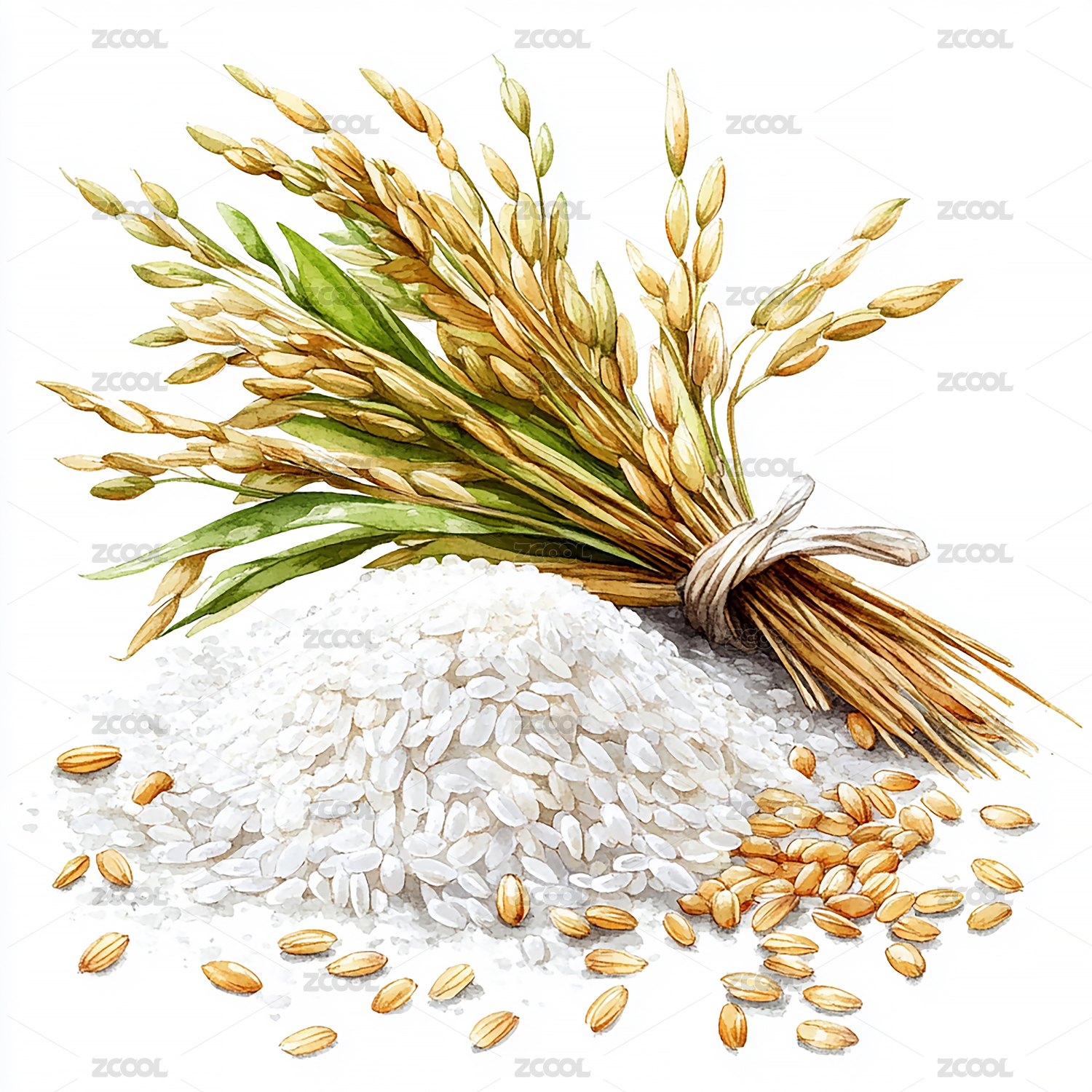 大米与稻谷的水彩画