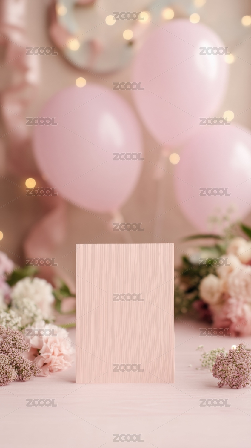 粉色卡片与花卉气球装饰场景