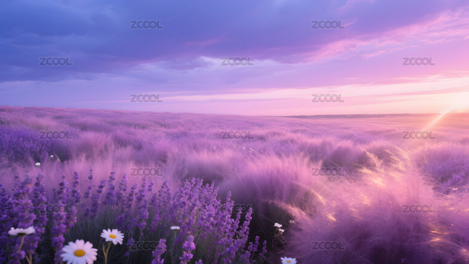 梦幻紫色花田风景