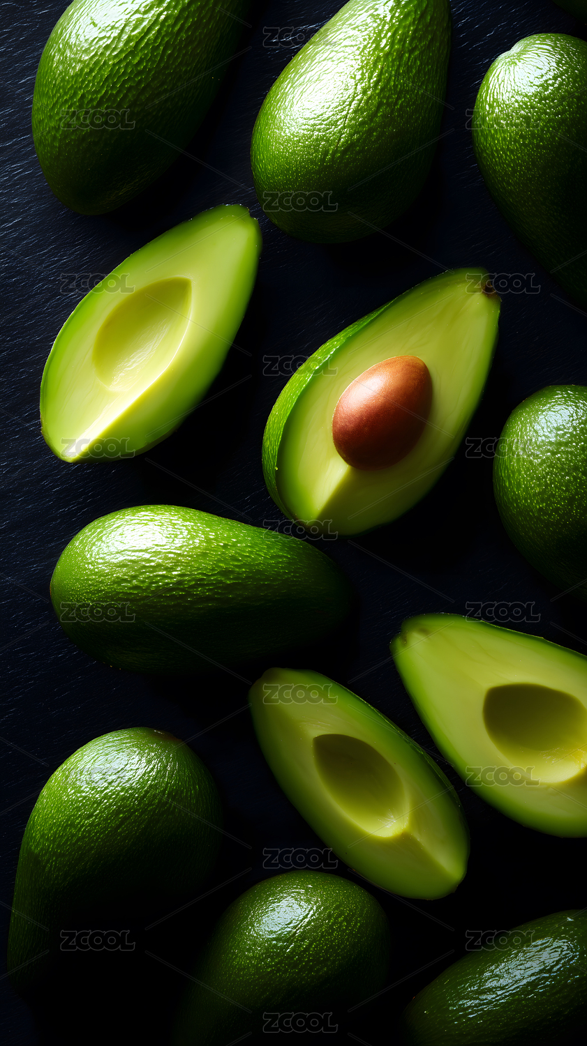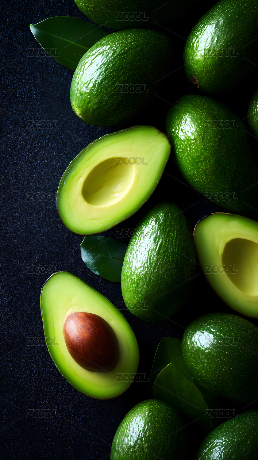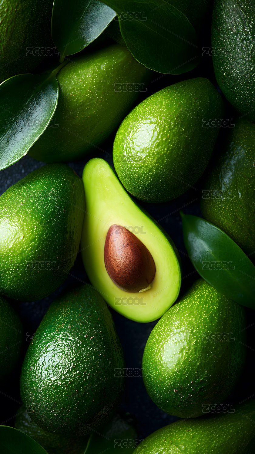 牛油果,果实,绿色,叶子,切开,特写,质感,新鲜,美食,健康