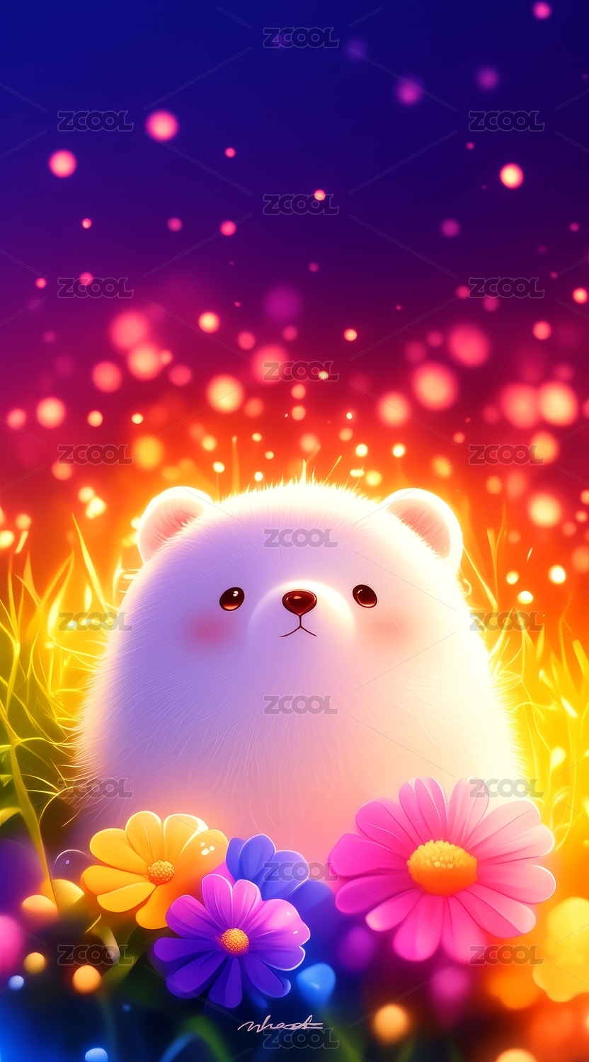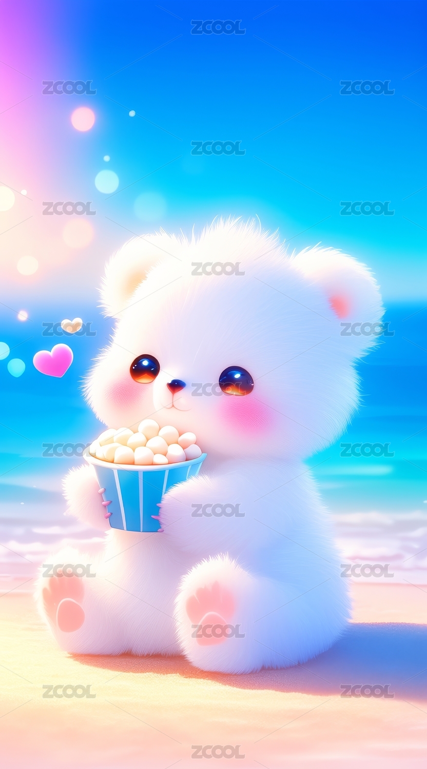 北极熊可爱唯美野生动物3D卡通插画壁纸
