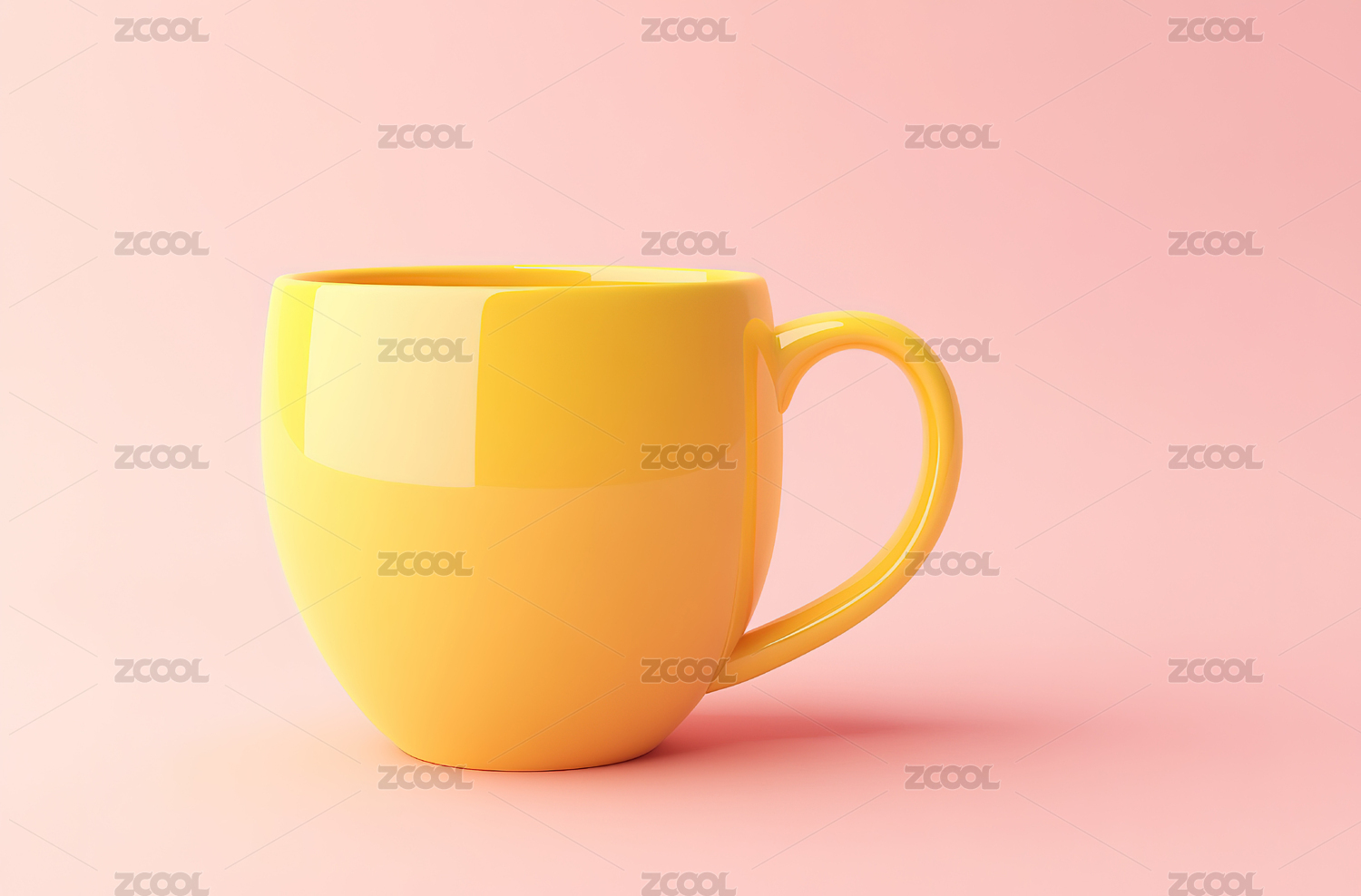 粉红色背景下黄色咖啡杯的特写镜头