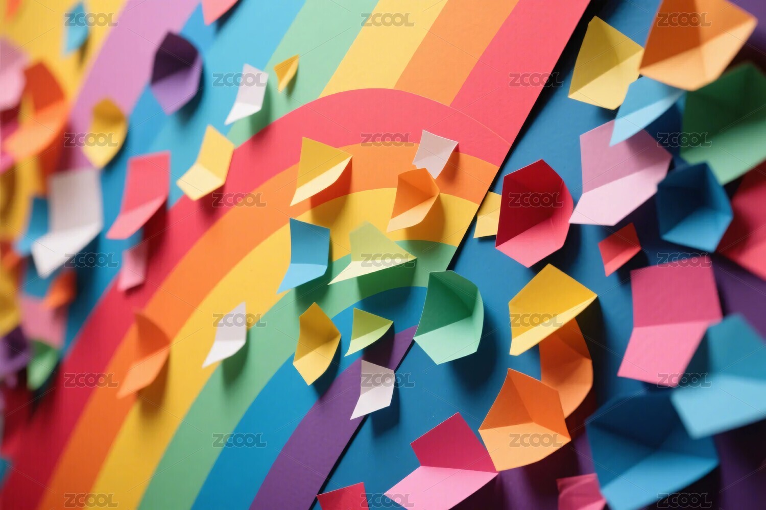 多彩折纸与彩虹背景