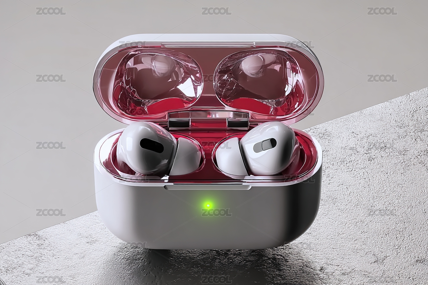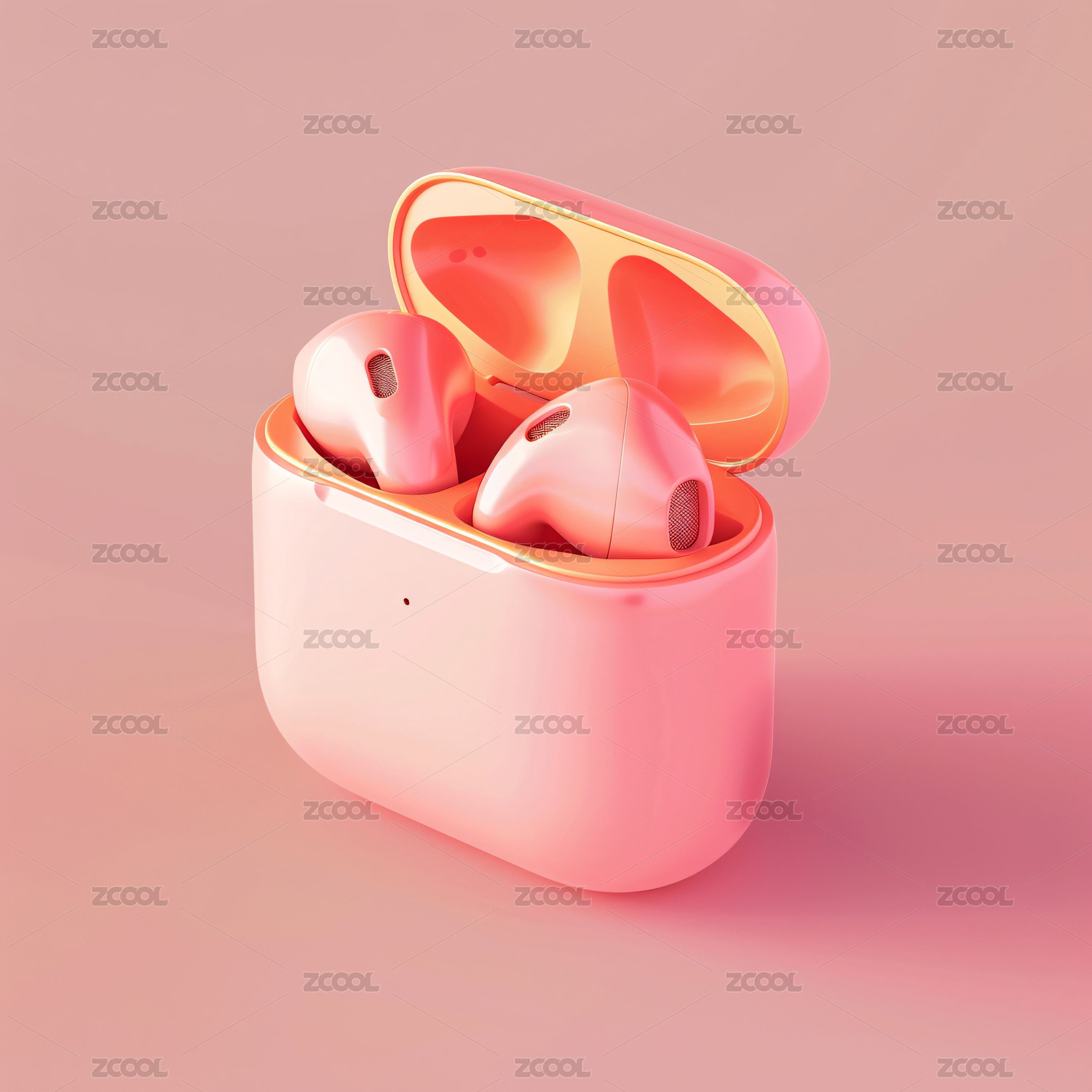 无线耳机3D渲染,听音乐娱乐的概念插图