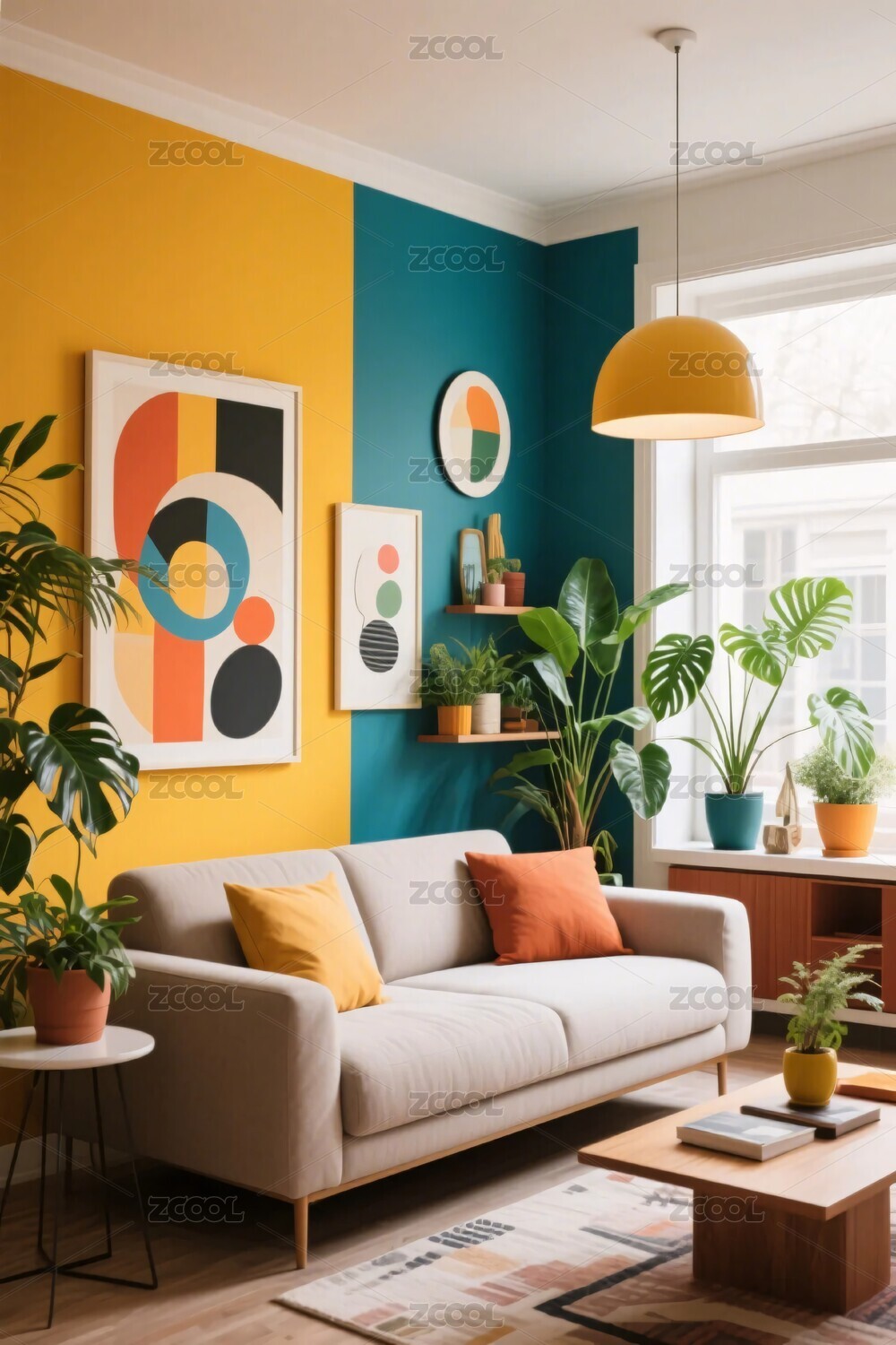 客厅,沙发,扶手椅,抱枕,绿植,地毯,装饰画,窗户,窗帘,现代