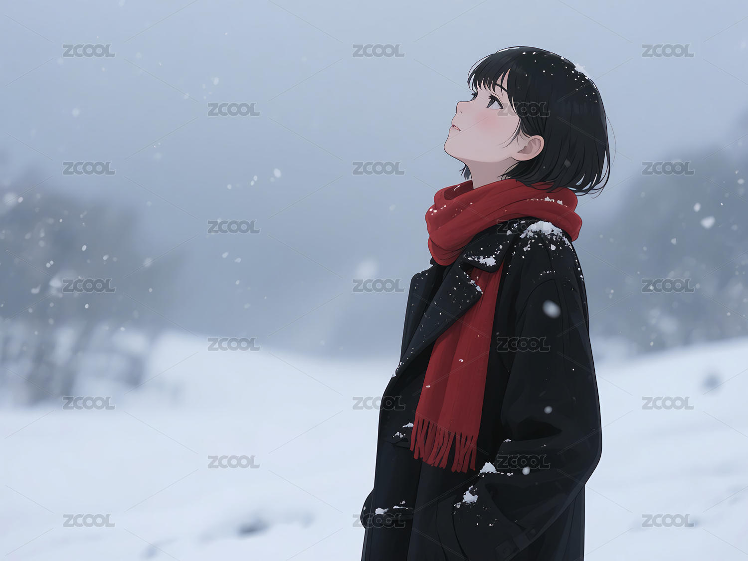 雪地,户外,女孩,冬季,雪景,短发,发丝,暖光,夕阳,自然