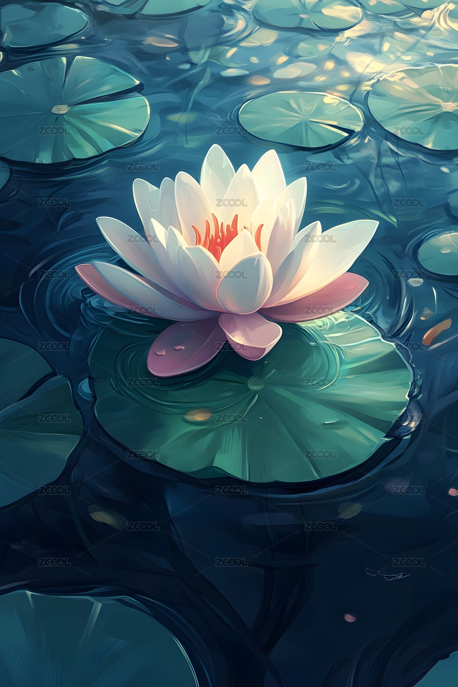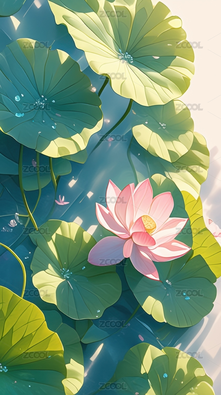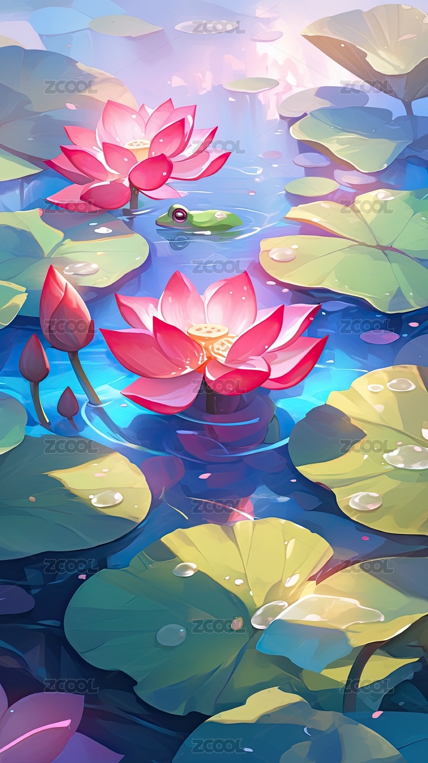 自然,水面,生态,和谐,插画,漫画,动漫,日漫,艺术,莲花