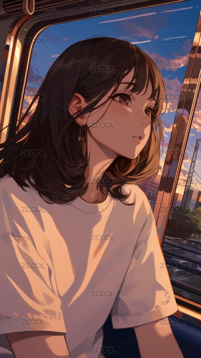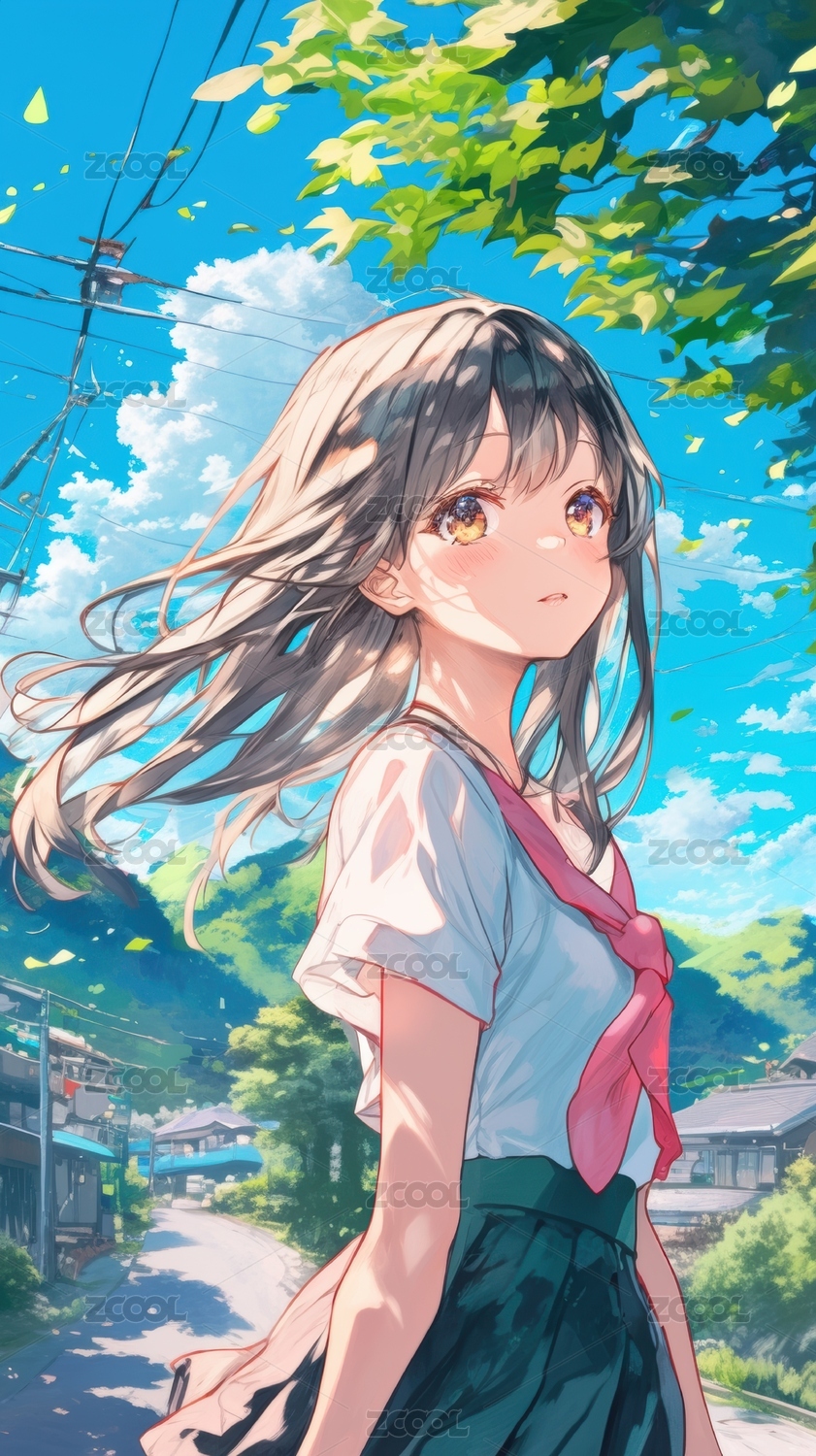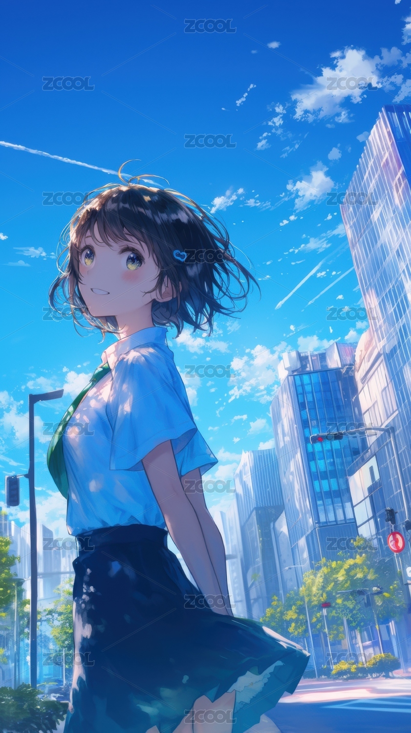 插画,漫画,动漫,日漫,户外,阳光,建筑,蓝色,光影,微笑