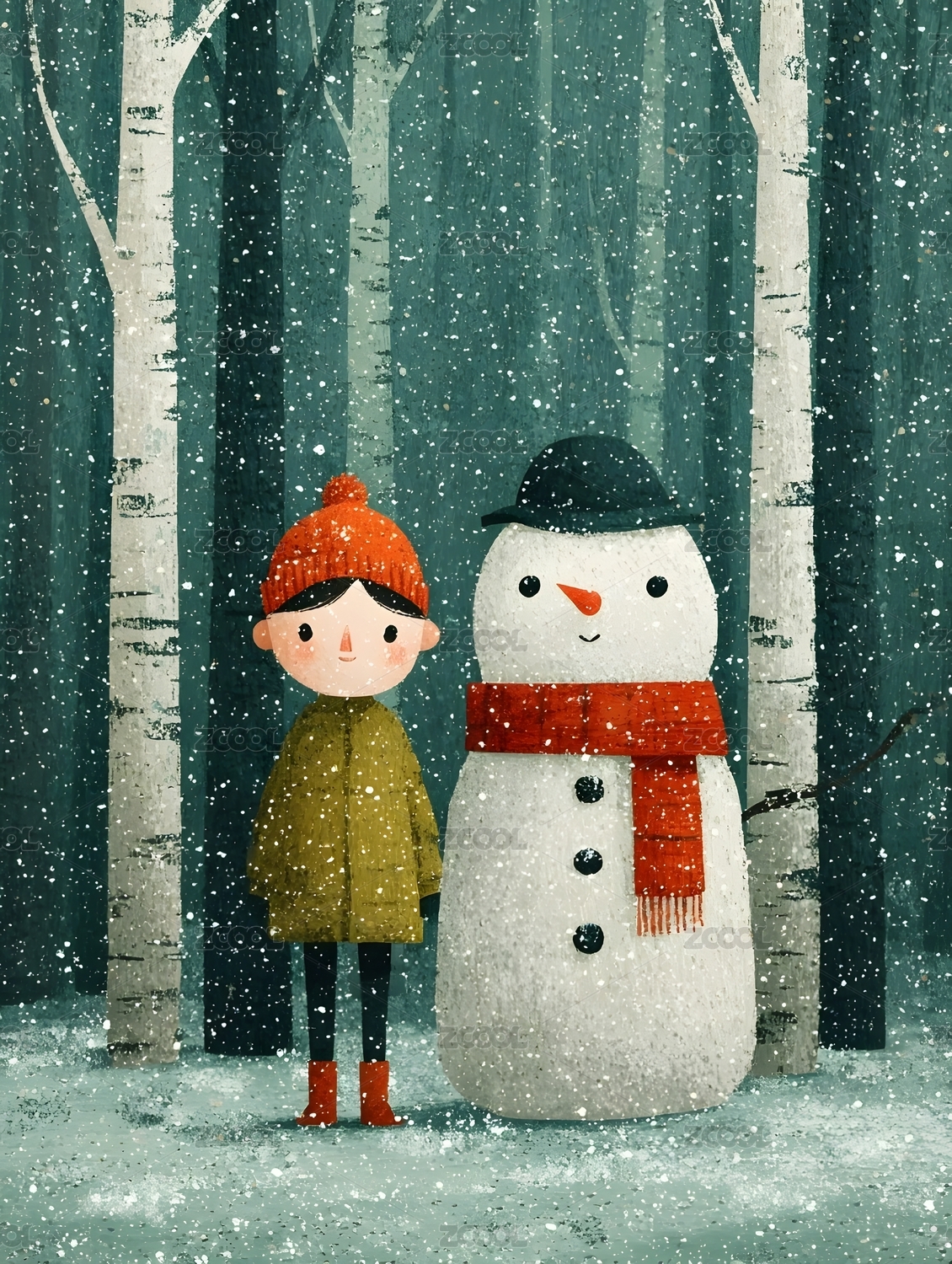 冬日雪人与森林