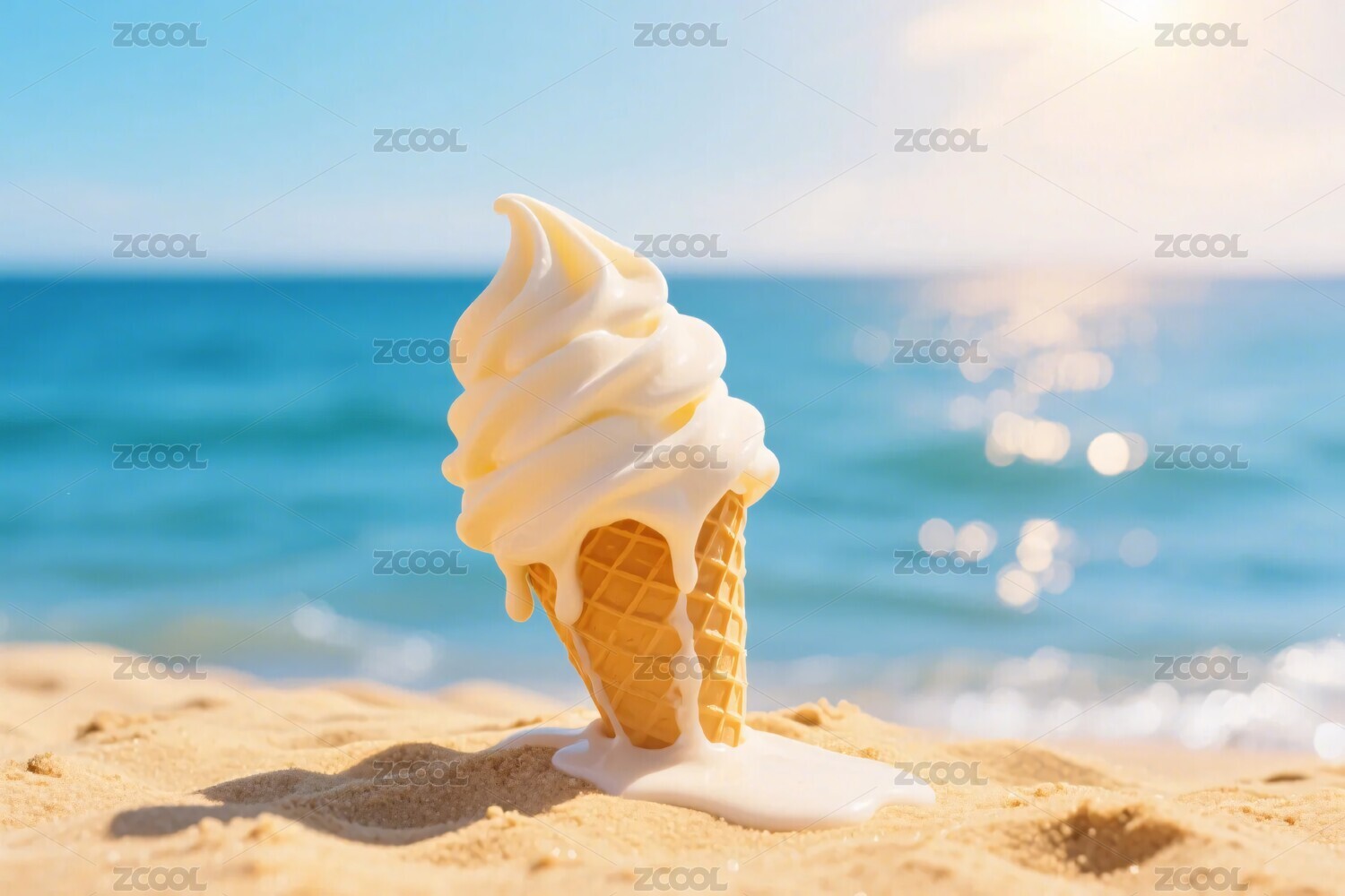 沙滩上融化的冰淇淋