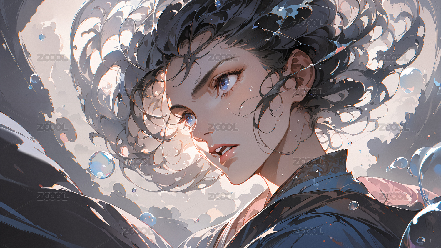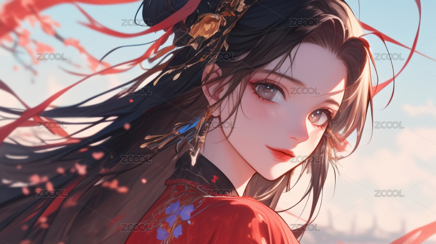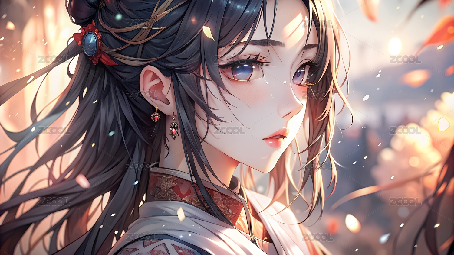 少女,卡通,插画,艺术,梦幻,背景,光影,明亮,红发,瞬间