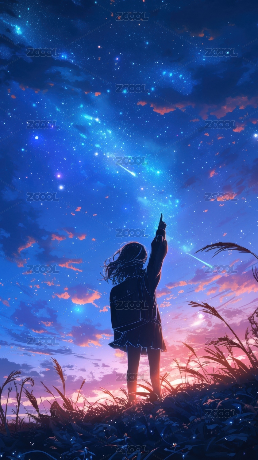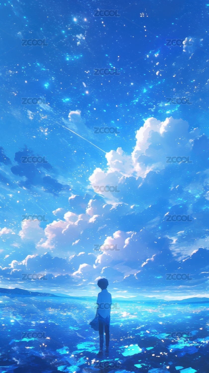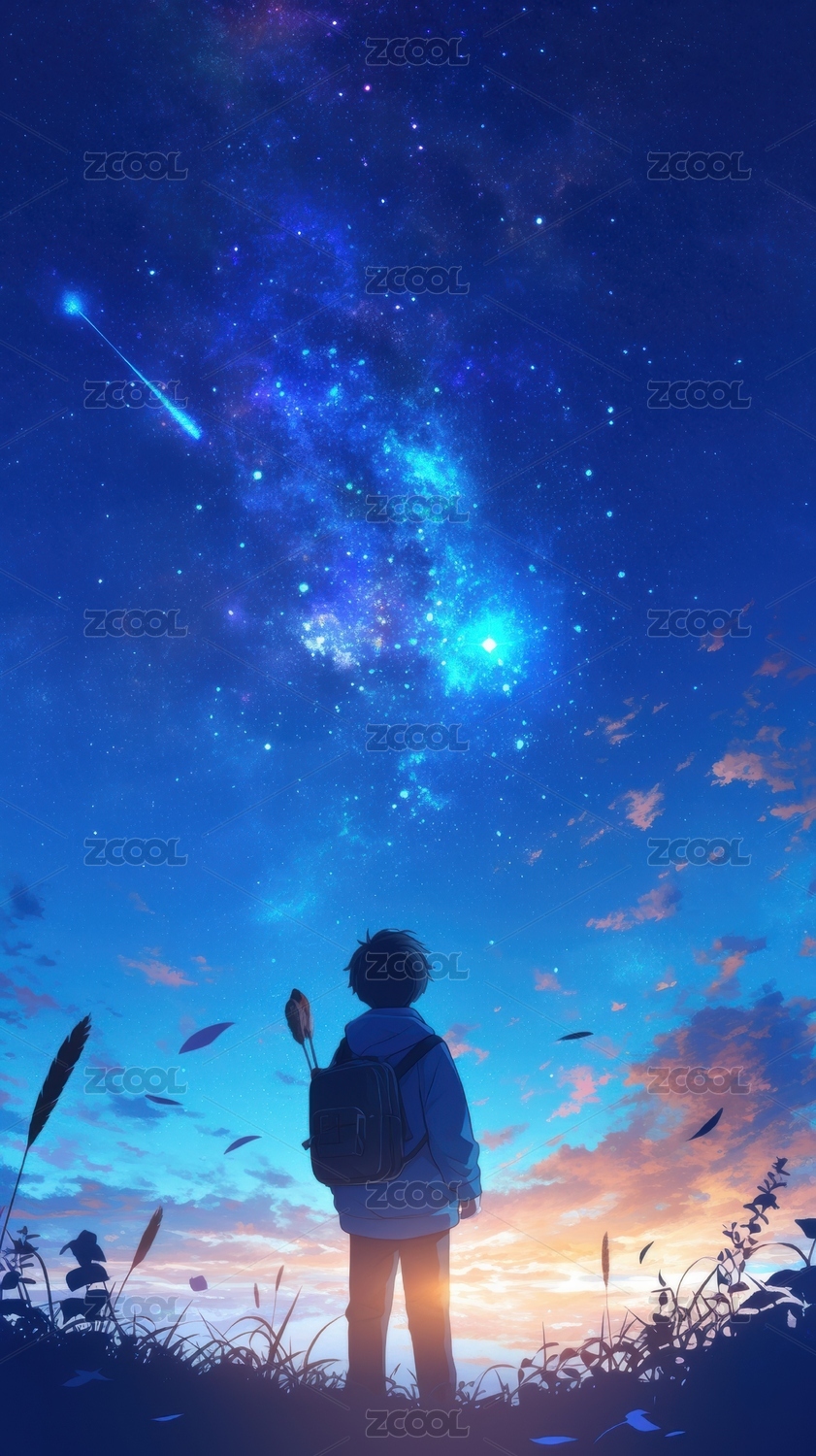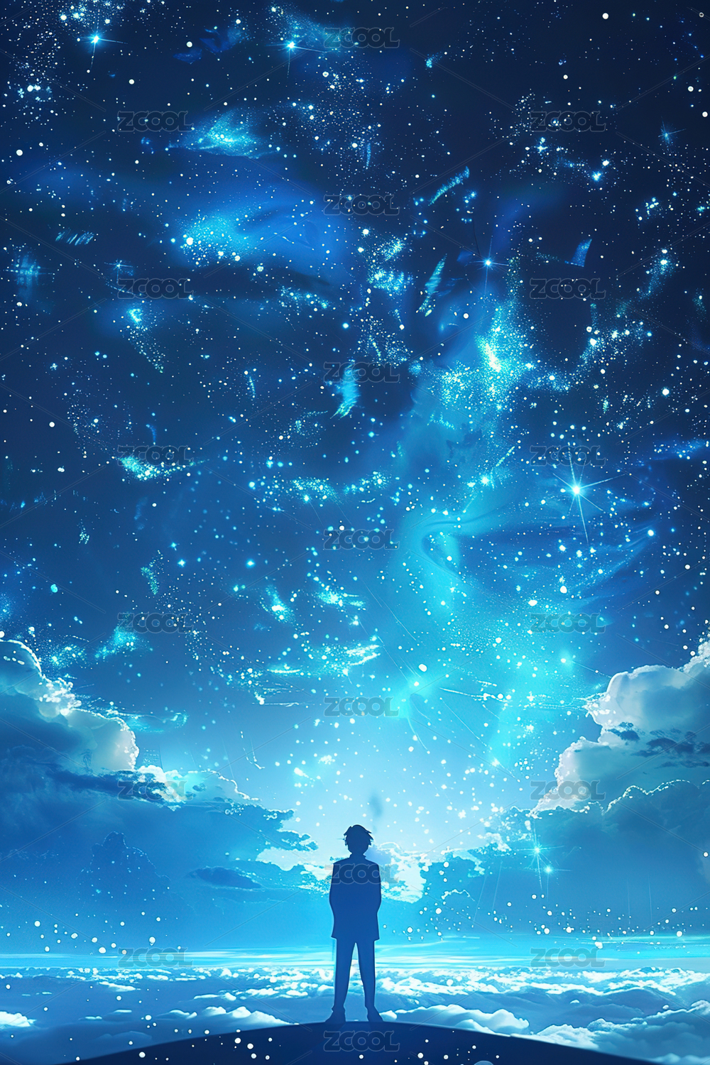 梦幻,夜晚,温馨,星空,静谧,幻想,蓝色,室内,光线,植物