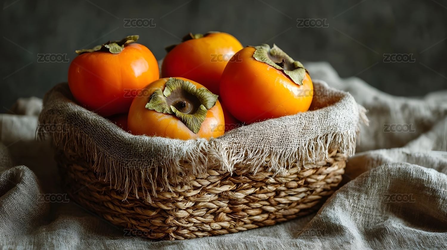 篮中柿子静物