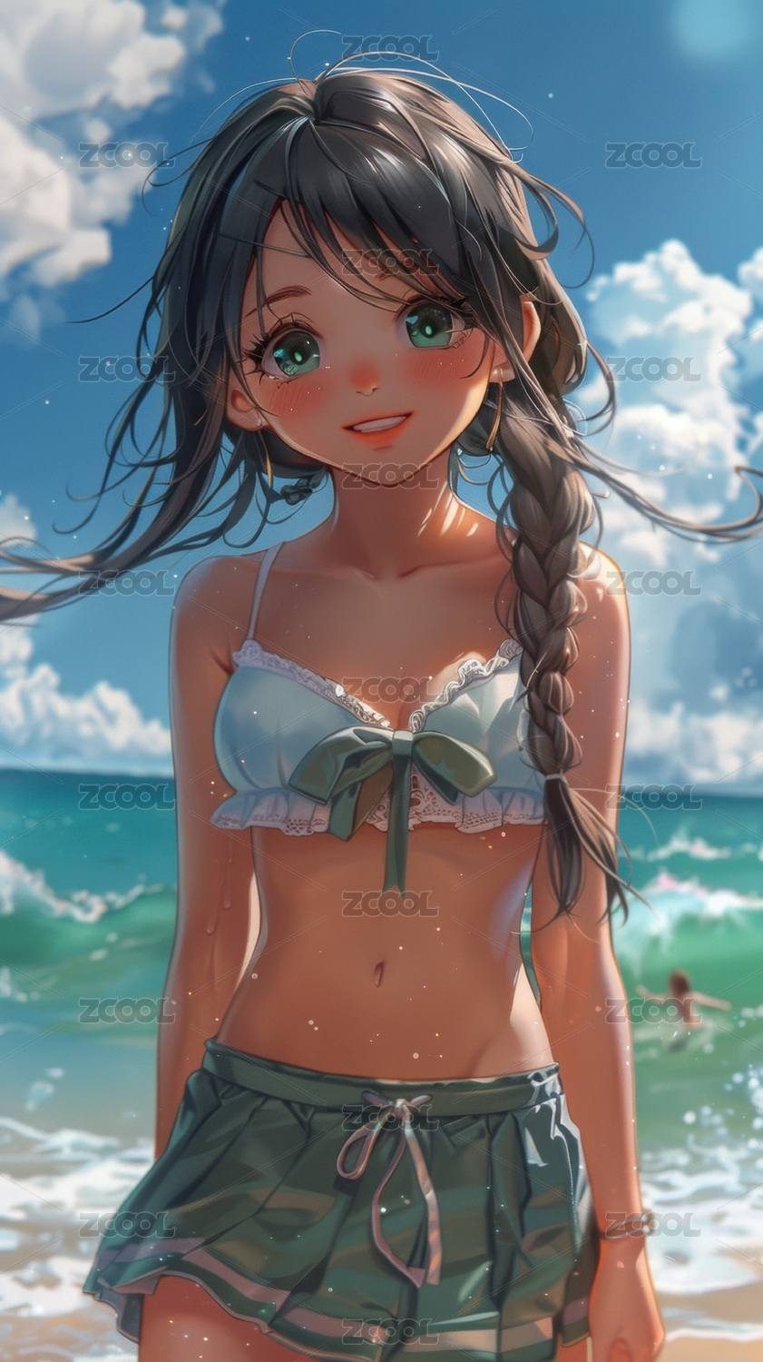 夏日海滩上的动漫女孩