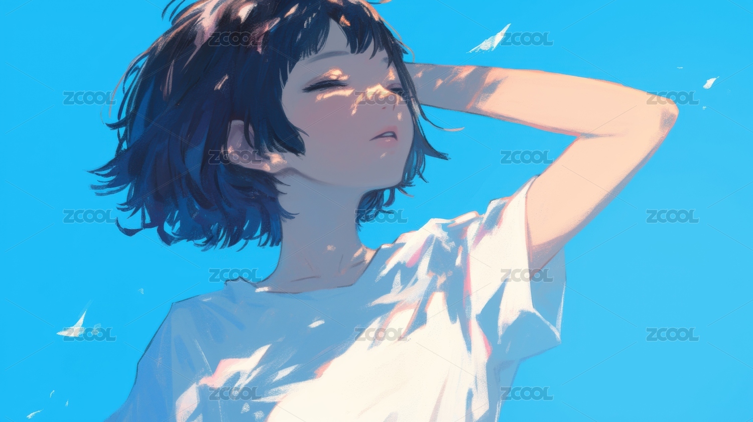 插画,梦幻,微笑,明亮,柔和,艺术,自然,少年,温馨,阳光