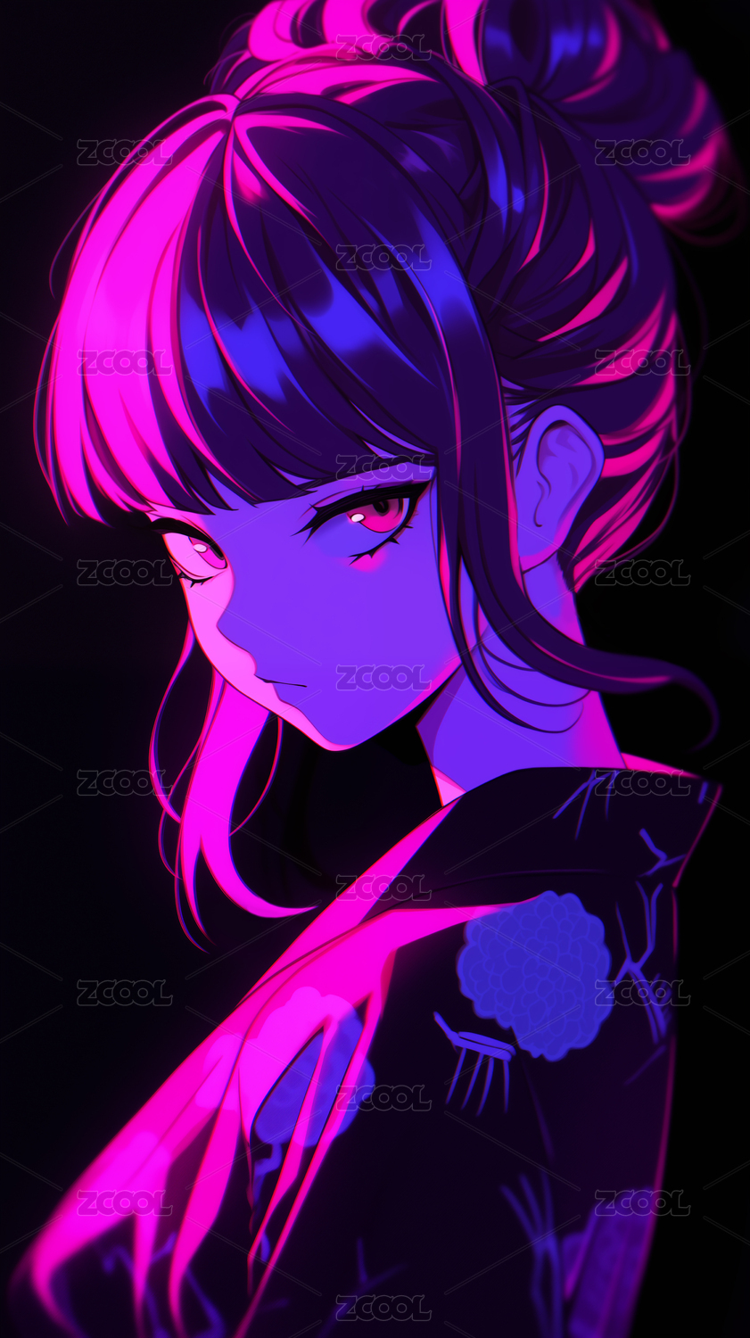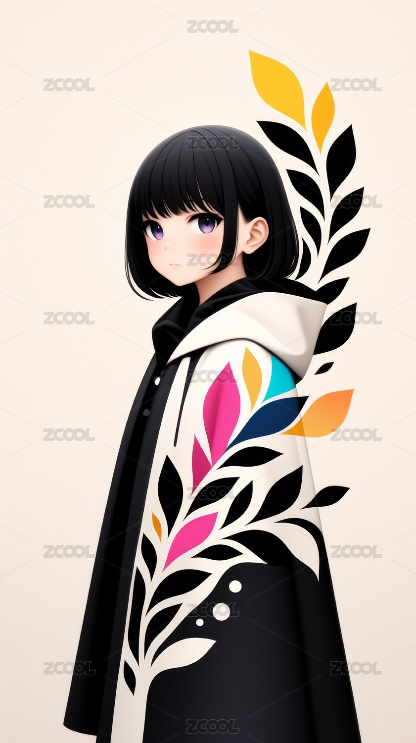 手绘动漫漂亮的穿着旗袍的女孩插画