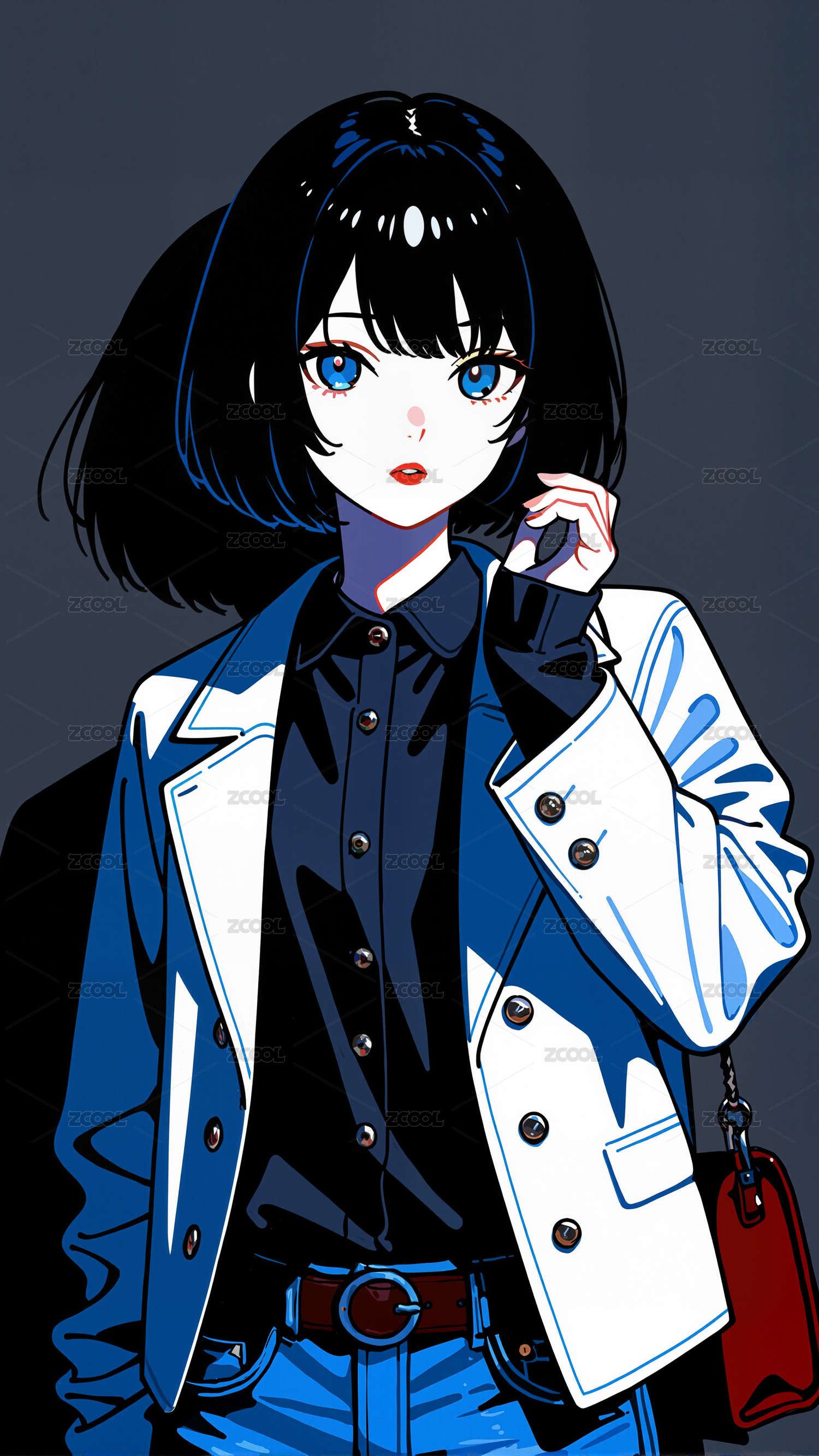 动漫二次元卡通女孩正面全身立绘衬衣短裤