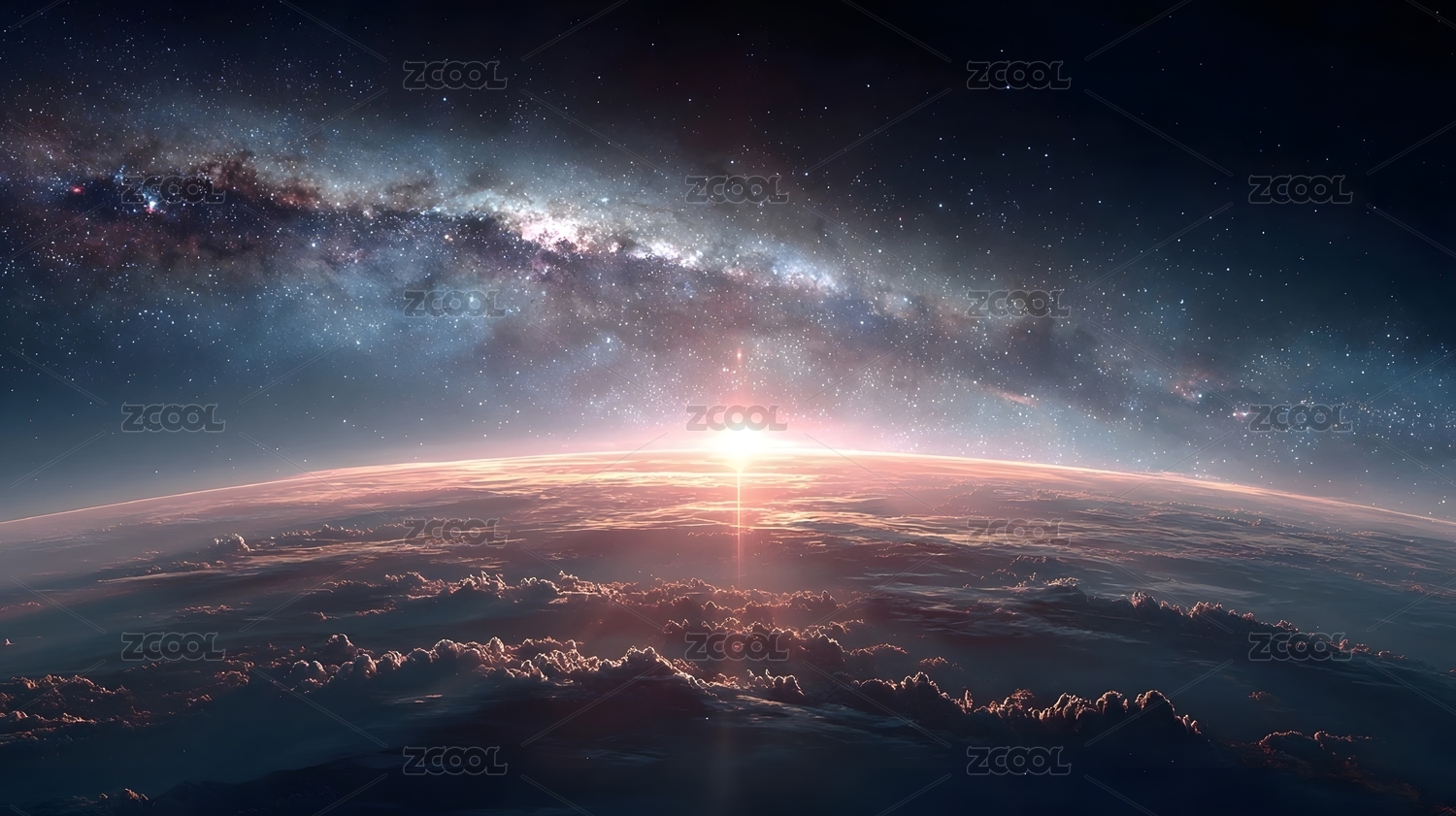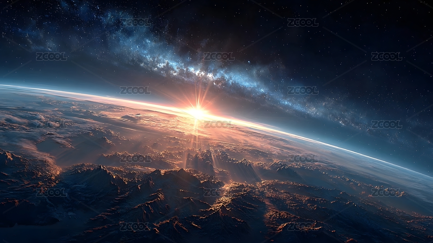 地球日出与银河