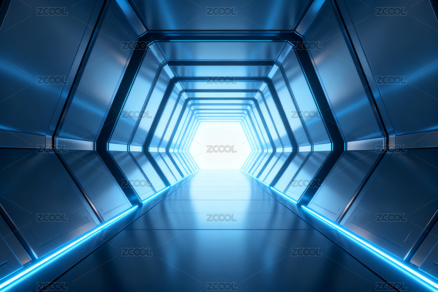 白色,背景,蓝色,光滑,墙壁,走廊,金属,光源,科幻,氛围