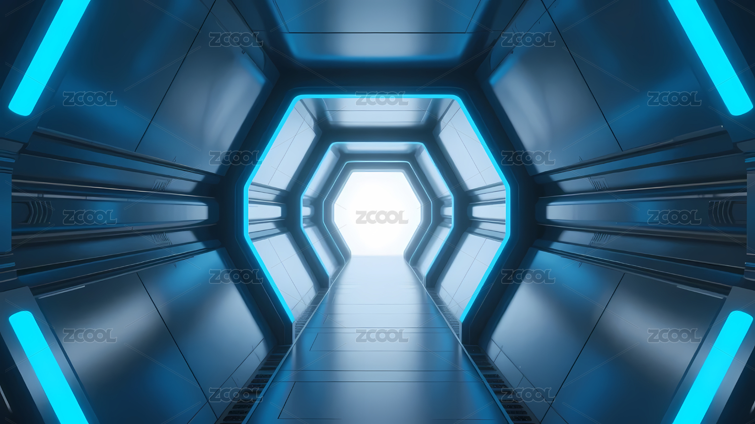 线条,白色,背景,蓝色,灯光,墙壁,走廊,金属,光点,尽头