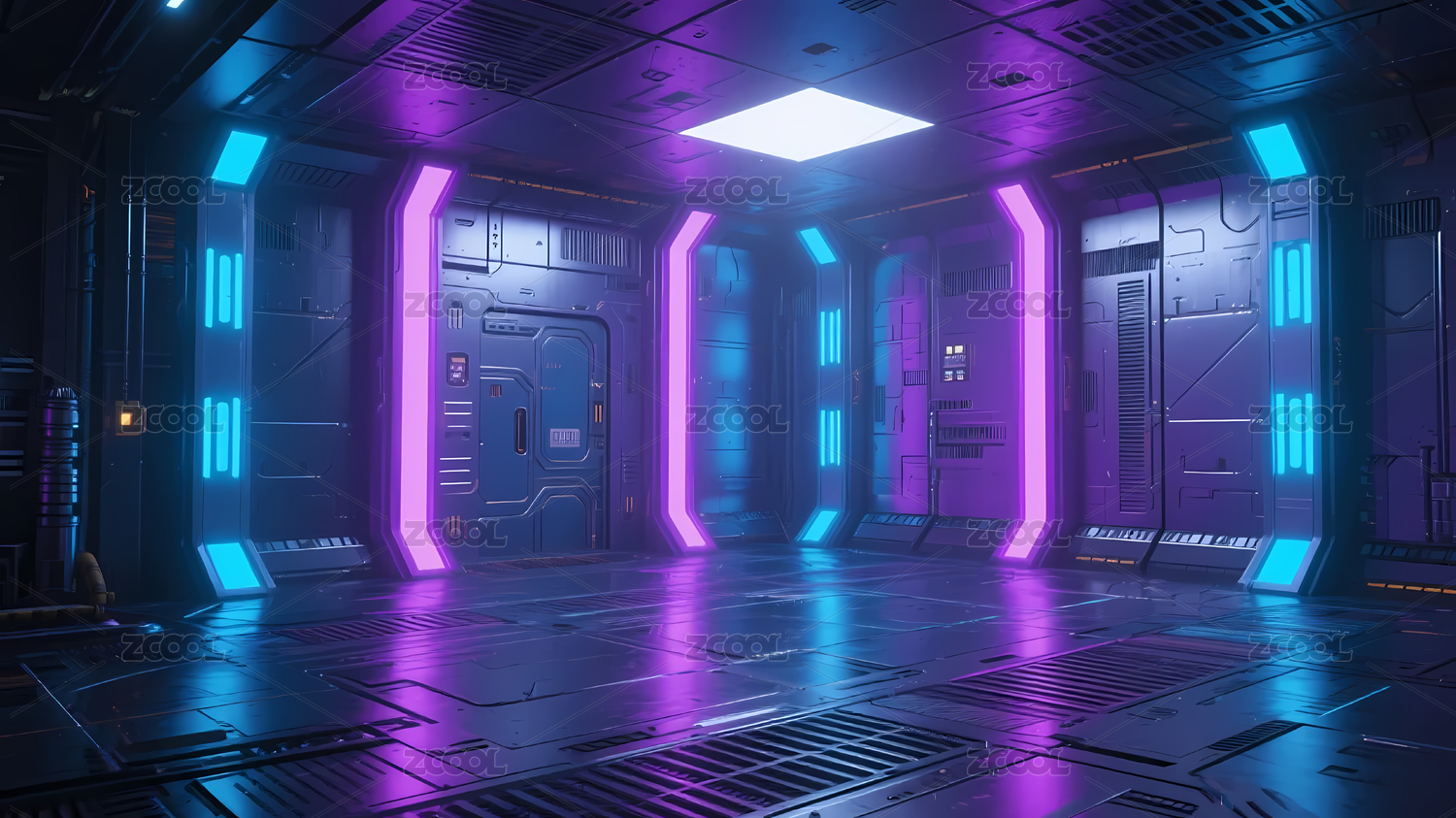 蓝紫灯光未来走廊