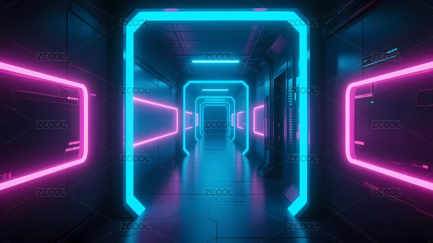 霓虹灯走廊与科幻氛围