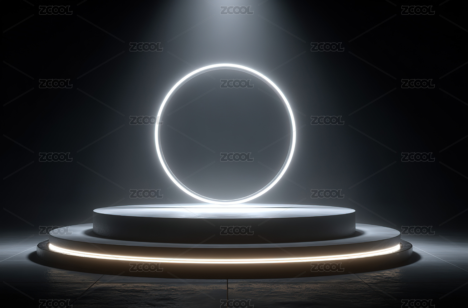 发光圆环与阶梯展台