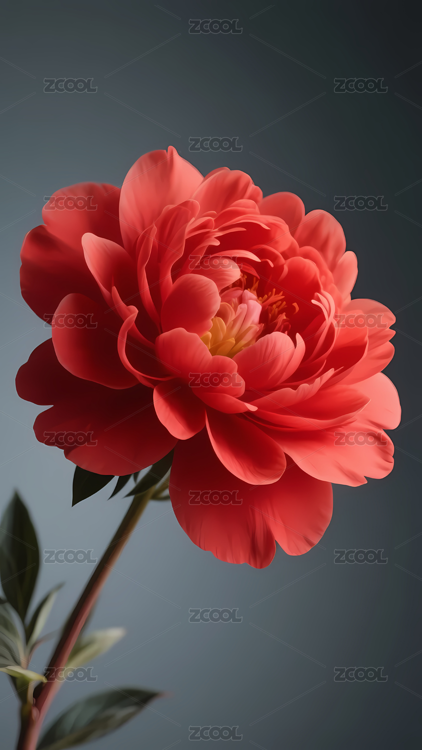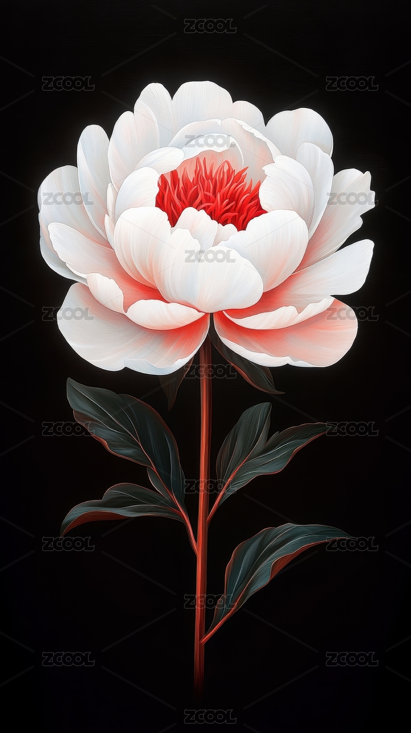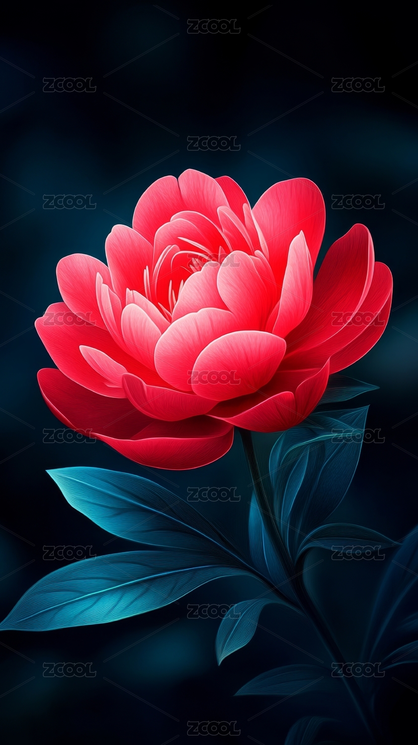 茎上一朵粉红色的花上面有绿色的叶子高清图