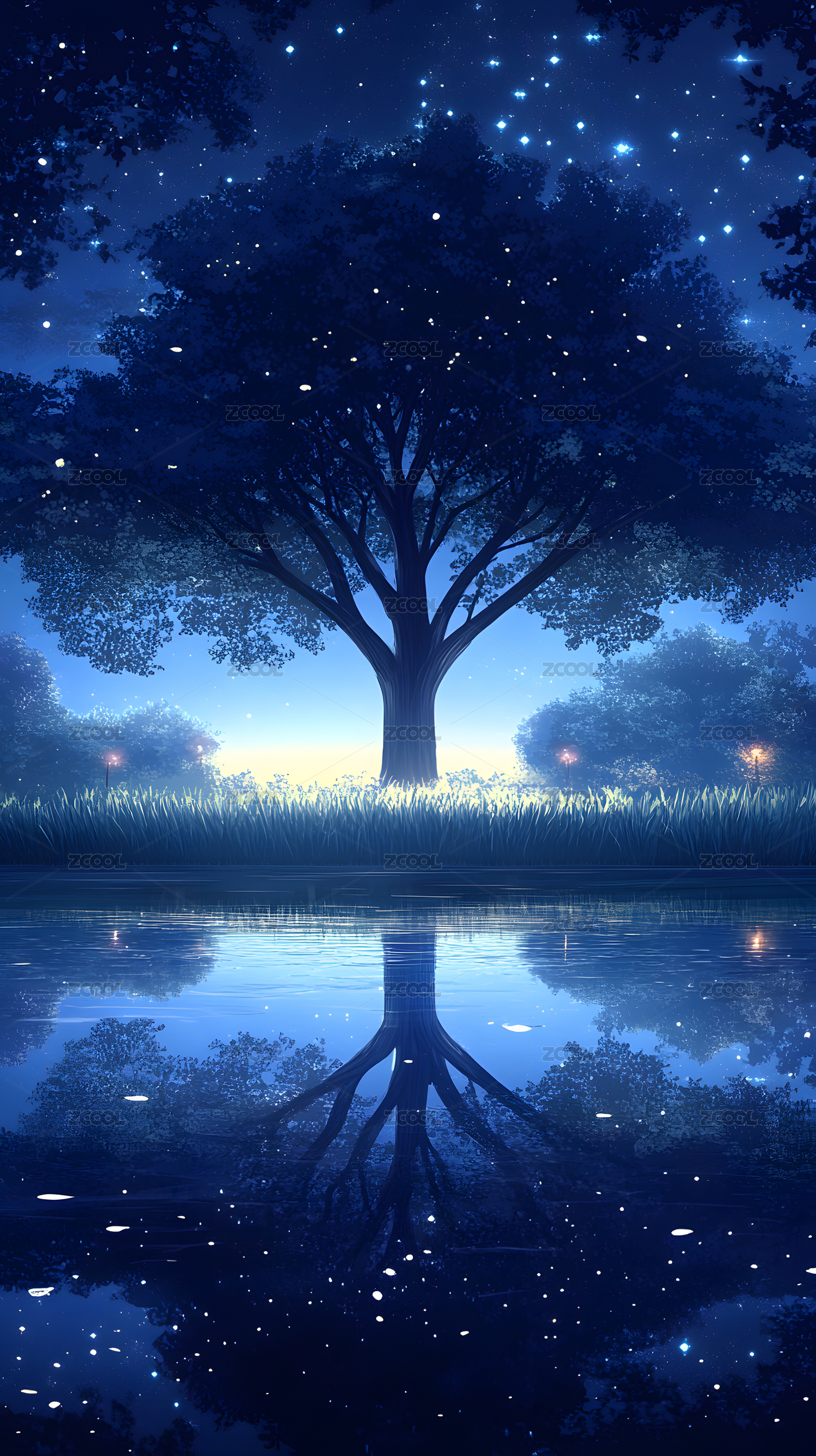 自然,梦幻,植物,美丽,温馨,静谧,夜晚,蓝色,夜空,窗户