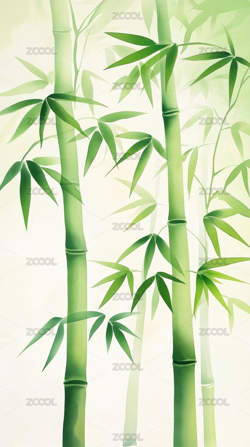 水彩画风格的翠竹图