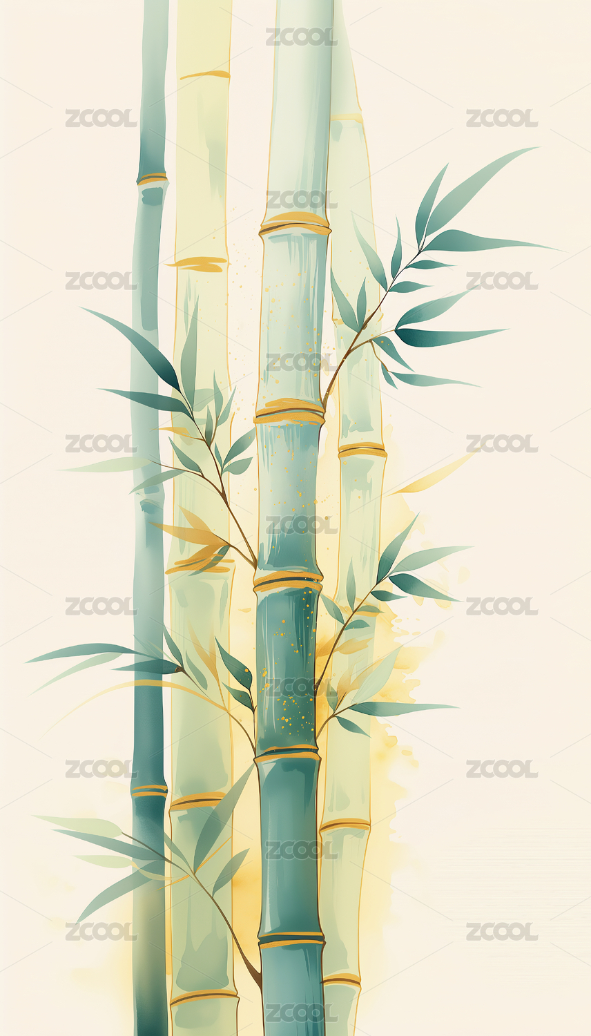国风水彩竹子插画